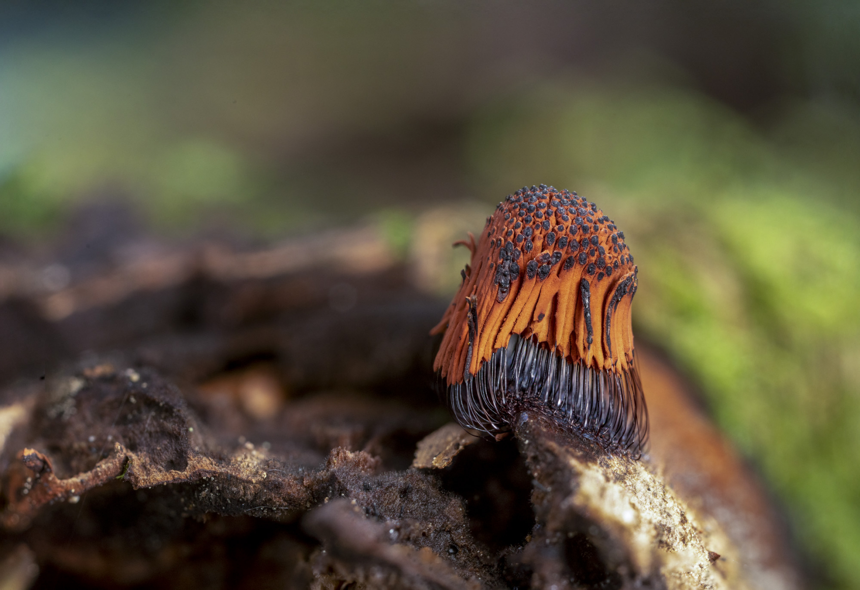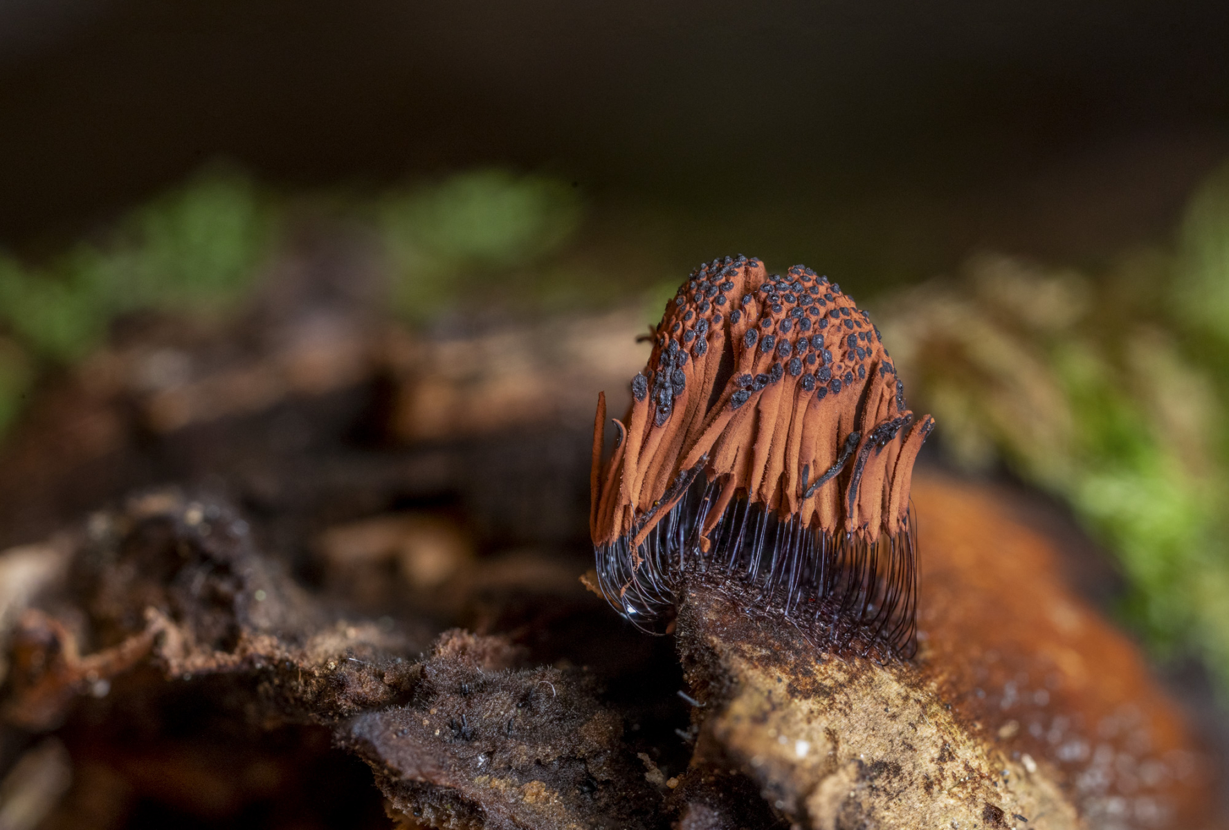 Hier ist mein nächster Kandidat aus der Stemonitisverwandtschaft: Gesamthöhe ~7 mm; Stiel etwa 2 mm; Sporen 6 - 7 mm mit Warzengruppen; auf einem liegenden Stück Holz in Bachnähe (Mischwald). LG Erwin