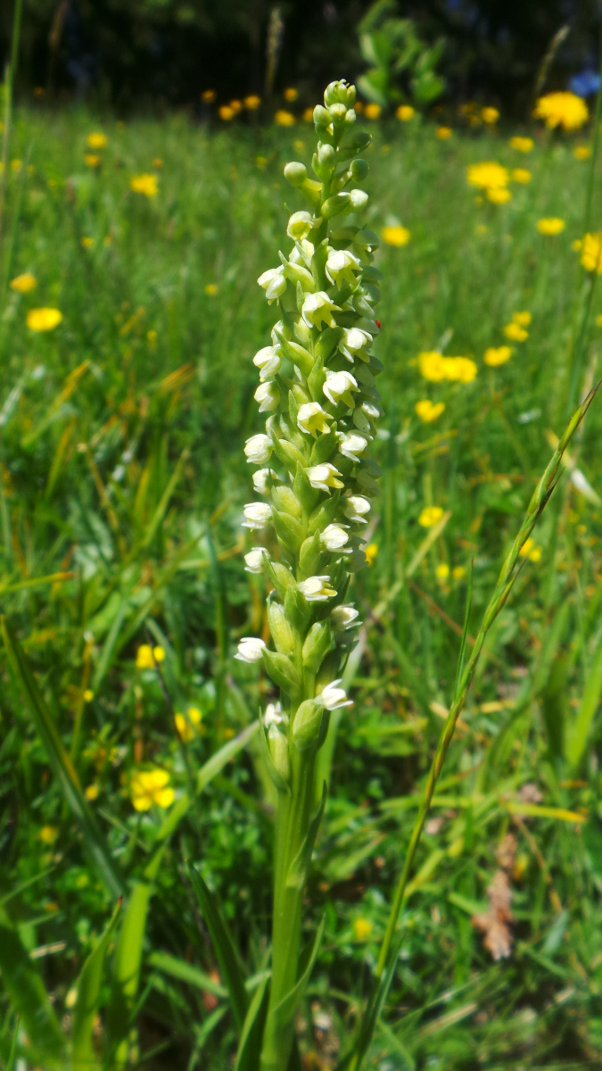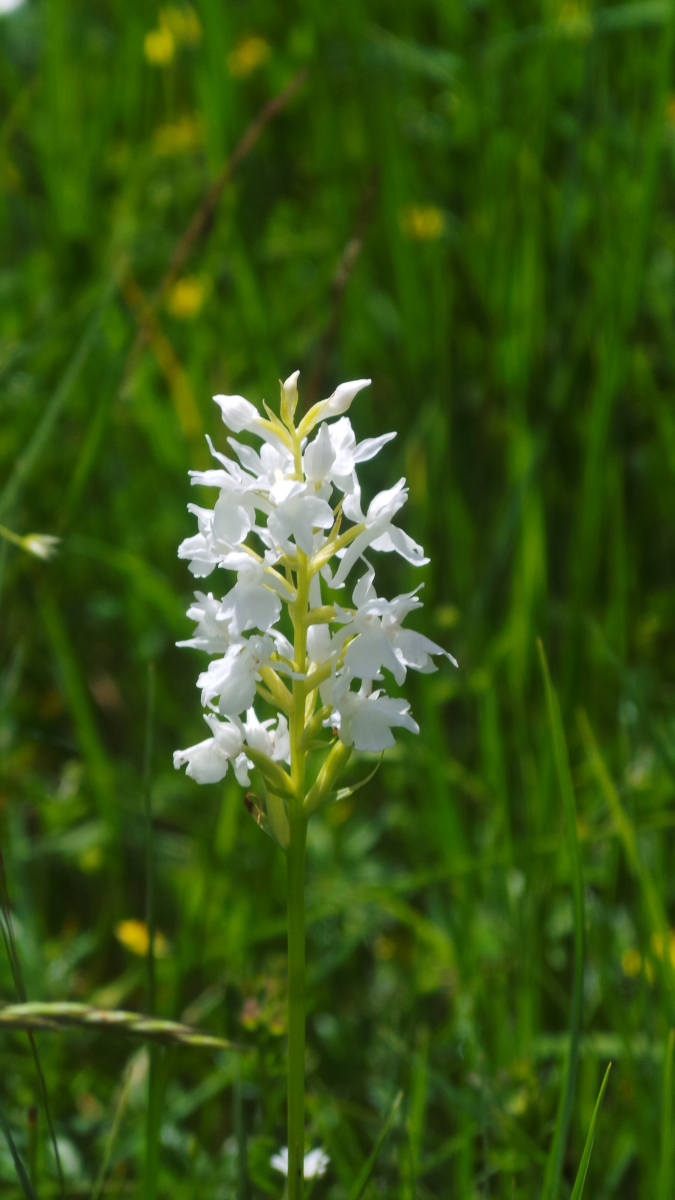 Da war natürlich nichts mehr zu sehen außer ein paar Pionierpflanzen. Seitlich davon entdeckte ich aber zu meiner allergrößten Entzückung einen Schwarm helmknabenkräutigerer Albinos: