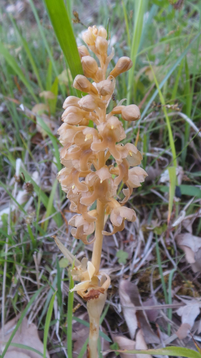 Zur Zeit hat die Vogelnestwurz ( Neottia nidus-avis) Saison, die ganz ohne Chlorophyll daherkommt. Sie wächst deshalb gerne und gut im Wald, weshalb es auf den Bildern eher schattig zugeht.