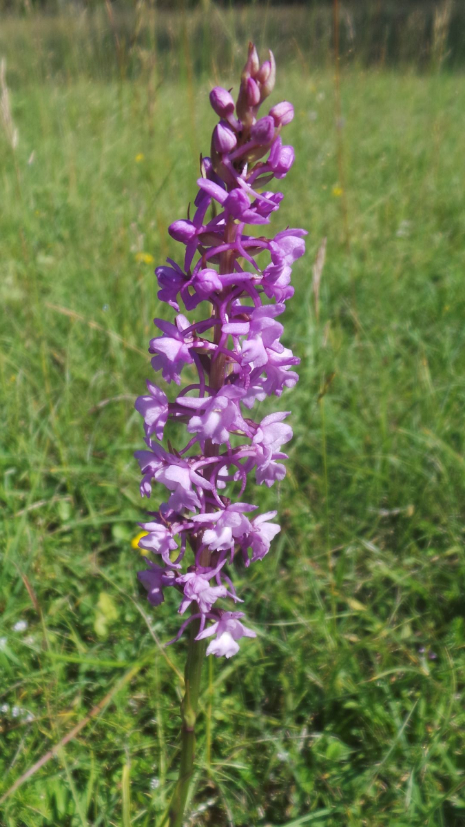 Mit dem langen Sporn sollte es die Mückenhändelwurz (Gymnadenia conopsea) sein: