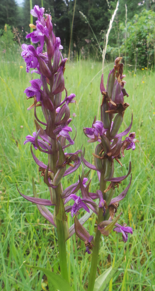 Es ist ja ein bisschen schwierig mit dieser Pflanze, die deutlich längere Tragblätter als Blüten hat, aber auch gerne wahllos hybridisiert, mit dem breitblättrigen, dem gefleckten, dem Manns/Prachtknabenkraut.