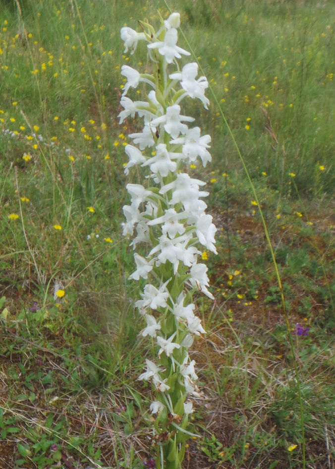 Da war natürlich nichts mehr zu sehen außer ein paar Pionierpflanzen. Seitlich davon entdeckte ich aber zu meiner allergrößten Entzückung einen Schwarm helmknabenkräutigerer Albinos: