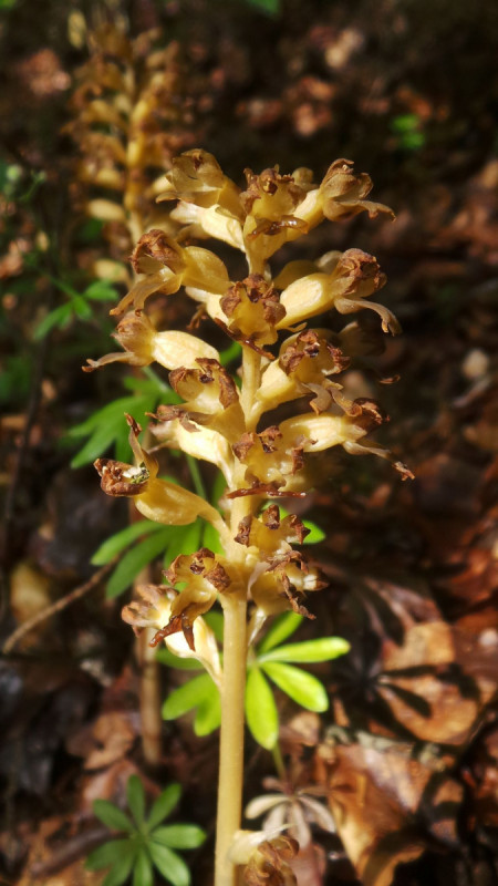 Zur Zeit hat die Vogelnestwurz ( Neottia nidus-avis) Saison, die ganz ohne Chlorophyll daherkommt. Sie wächst deshalb gerne und gut im Wald, weshalb es auf den Bildern eher schattig zugeht.