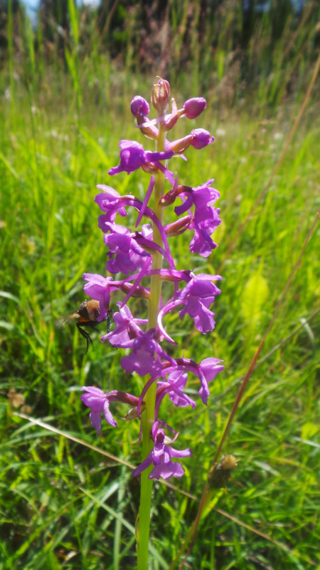 Es ist ja ein bisschen schwierig mit dieser Pflanze, die deutlich längere Tragblätter als Blüten hat, aber auch gerne wahllos hybridisiert, mit dem breitblättrigen, dem gefleckten, dem Manns/Prachtknabenkraut.