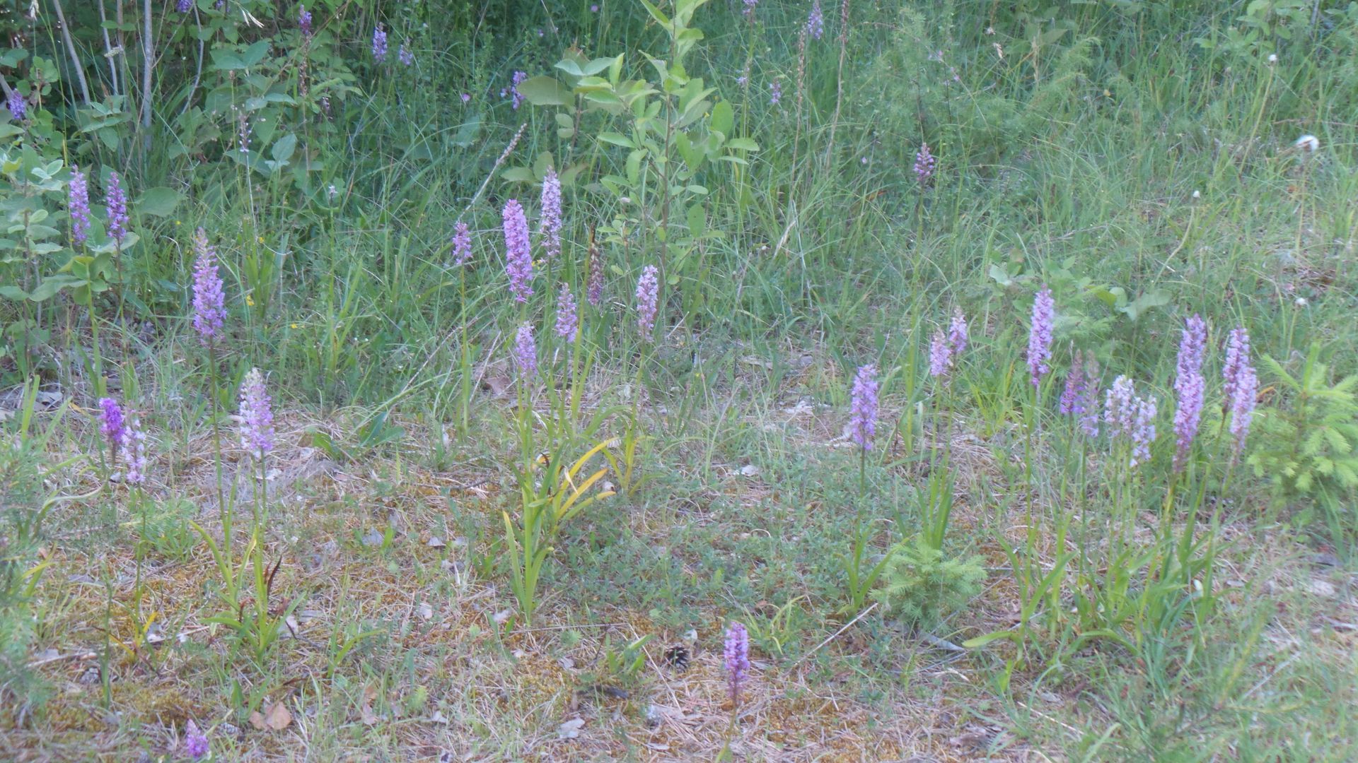 Da war natürlich nichts mehr zu sehen außer ein paar Pionierpflanzen. Seitlich davon entdeckte ich aber zu meiner allergrößten Entzückung einen Schwarm helmknabenkräutigerer Albinos: