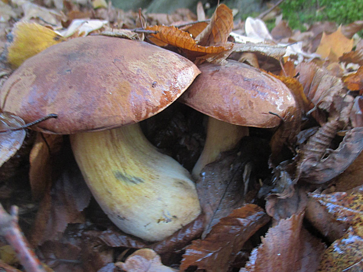 Einen Tipp, was für eine Art aus meiner Sicht in Frage kommen könnte, möchte ich lieber nicht abgeben. Für B. erythropus waren mir aber die Röhren zu wenig rötlich (wobei das bei meiner "Expertise" was diese Gruppe angeht nicht unbedingt was heißen muss). Die anderen beiden Fruchtkörper habe ich nicht herausgenommen, dazu kann ich nichts weiter sagen.