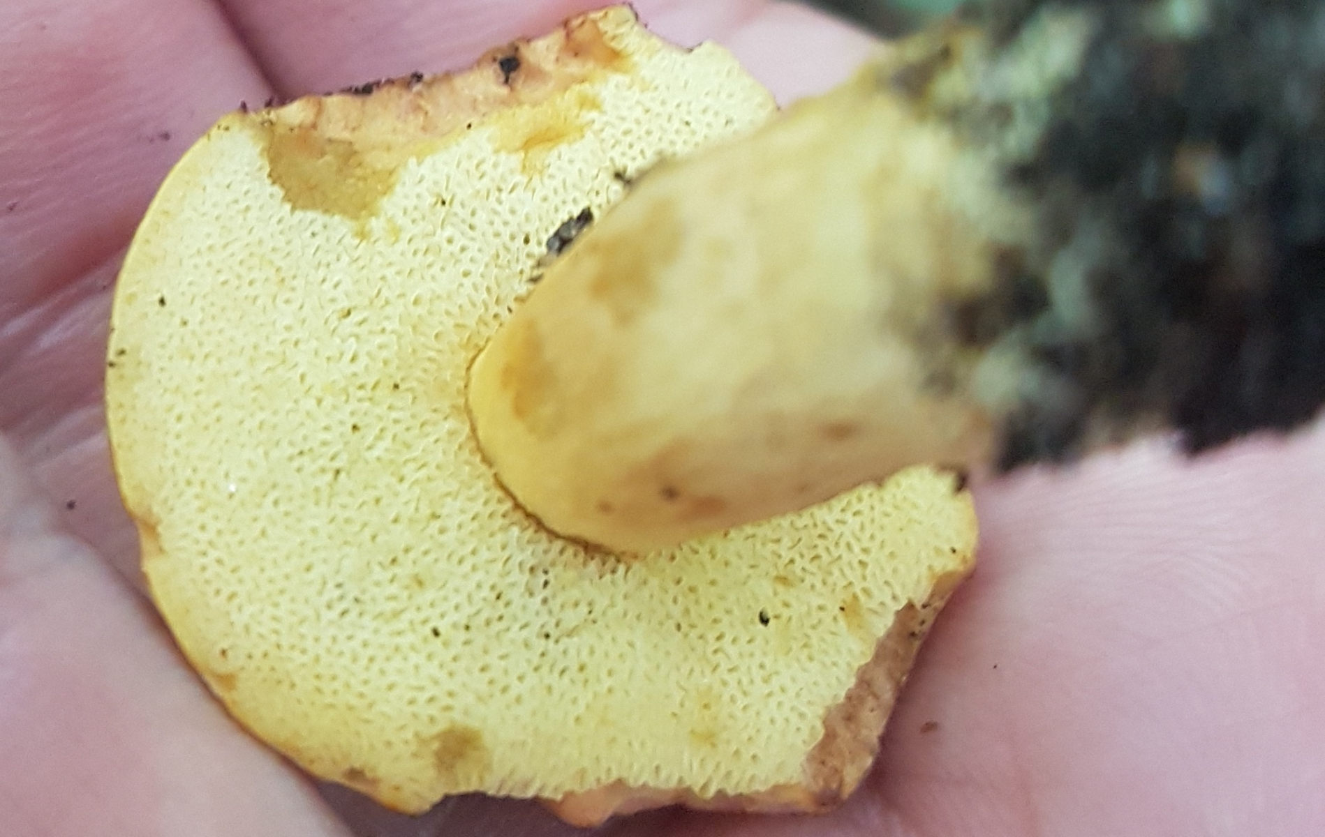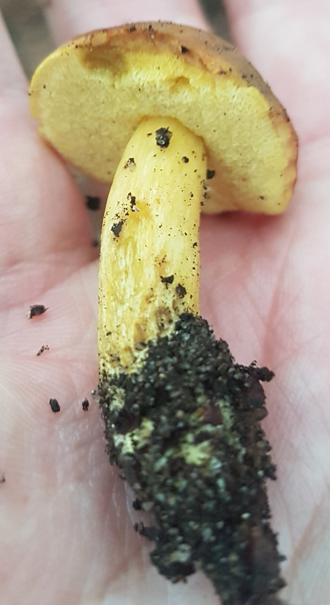 Heute einen gelbfleischigen/ -stieligen Röhrling mit brauner Huthaut am Fuße einer Hainbuche gefunden. Drumherum gab es aber auch immer mal einige Eichen.