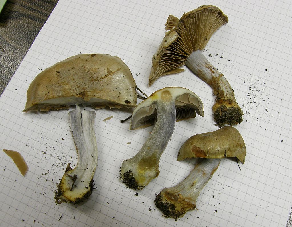 Also zunächst mal mein erstes Phlegmacium dieses Jahres, welches ich bereits im Feld (moorige Fichtenparzelle, eventuell oberflächlich angesäuert, nur Fichte) als Mitglied der Glaucopodes eingeordnet hatte. Bei der Nachuntersuchung zu Hause bestätigte sich dies und die Bestimmung war für mich eigentlich schon makroskopisch als Cortinarius dionysae klar, wenngleich ein Mehlgeruch zwar feststellbar war, jedoch nur wenig deutlich hervorgetreten ist. Auch Sporenform und Größe bewegten sich im Rahmen dessen, was zu dieser Art im Kompedium angegeben ist.