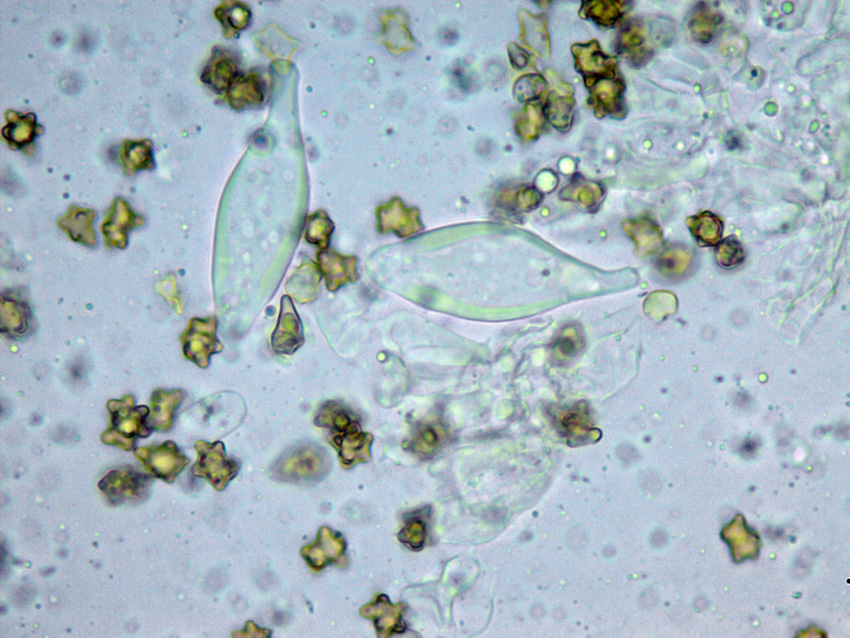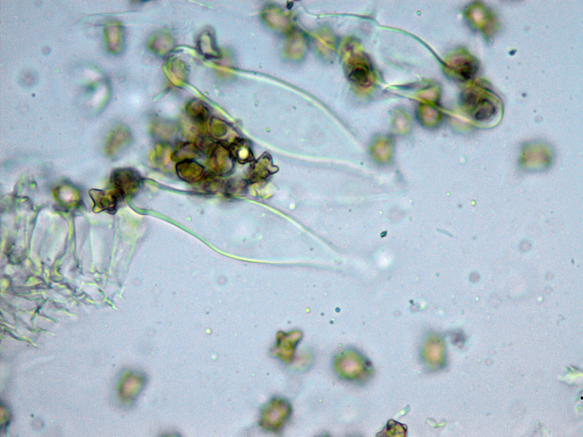 Auch hier gehe ich zunächst der Einfachheit halber davon aus, dass die Art über die Kombi Sporenform und -größe mit charakteristisch geformten Hymenialzystiden bereits klar sein könnte.