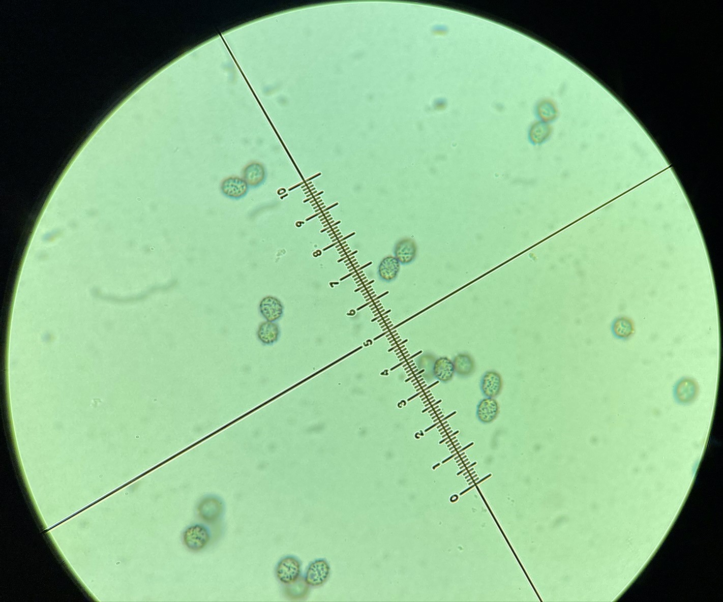 Sporen: recht klein 5,5-7 x 5-6,5, mit isolierten, ca. 0,5 Mikrometer hohen, abgerundete Warzen, welche nur selten einzelne Verbinungen, selten auch Gabelungen haben