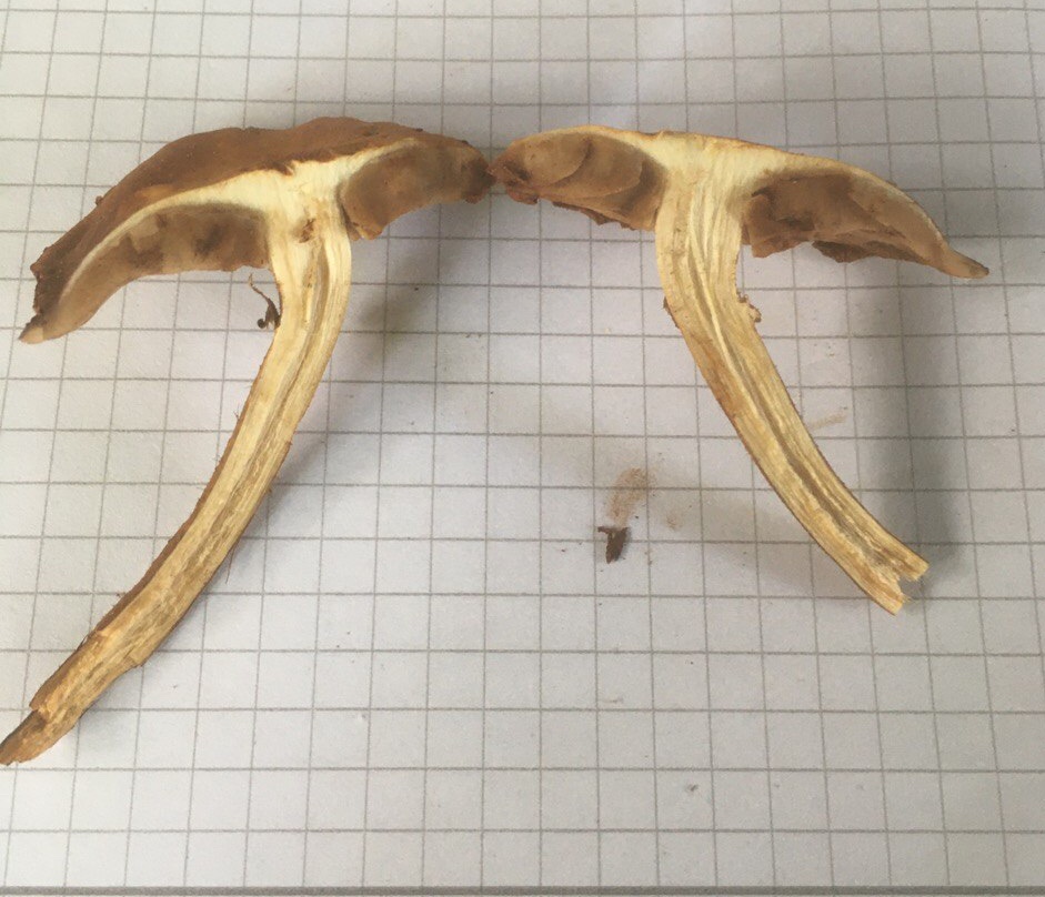 4.: Anschnitt: DĂźnnes Fleisch, Stiel hohl und faserig.