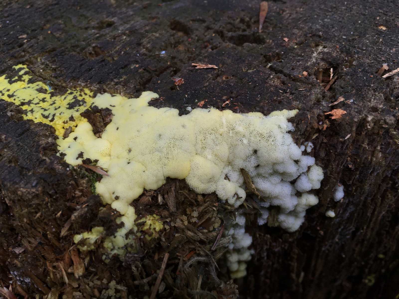 6 an einem schattigen Stumpf zeigte sich dieser hübsche Schleim gerade in der Metamorphose