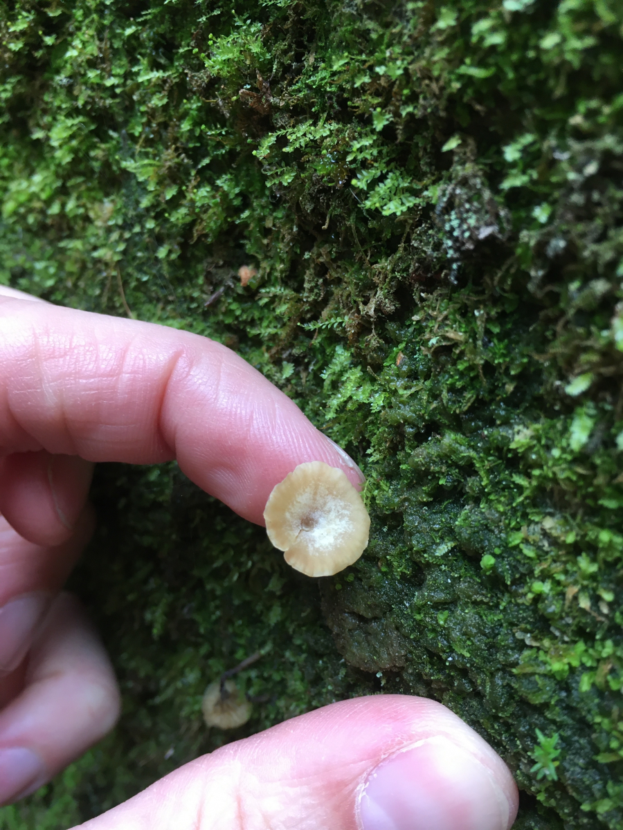 11 beim Abstieg ging es durch eine Klamm mit bemoosten Felstwänden. Hier fand ich viele dieser kleinen Gräle. Leider gelang es mir nicht makroskopisch eine Einordung zu treffen. Auffällig waren für mich der farblich abgesetzte dunklere und etwas ins orangerötlich tendierende Stiel mit basaler Aufquellung und teils sichtbaren Mycelfäden sowie die sehr entfernt stehenden Lamellen. Die Hutriefung war nur schwach ausgeprägt. So blieb ich bei Adermoosling oder Nabeling. kommt vielleicht eine Omphalina hin? Da sie hier wirklich massenhaft an fast allen Felsen vorkamen und die Gegend ja auch hochfrequentiert ist habe ich die Hoffnung dass sie vielleicht einer von Euch schon mal bestimmt hat und mir einen Tip geben kann in welche Richtung es geht?