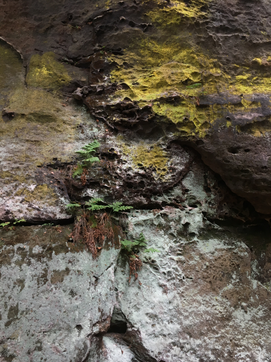 2 die Felsen kamen auch mal farbenfroh. Als Sprayer kommt eine Schwefelflechte in Frage (Chrysotrix chlorina) oder war es doch ein Dynamo Fan?