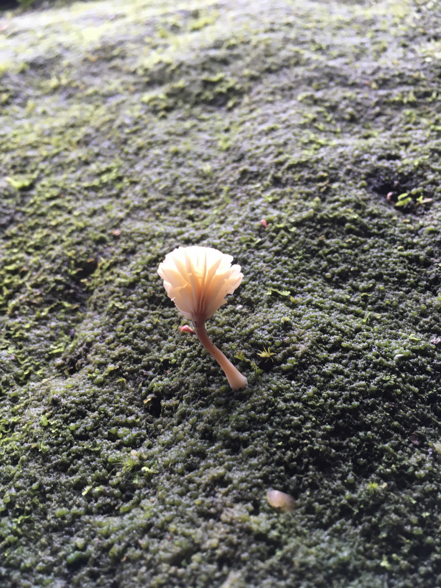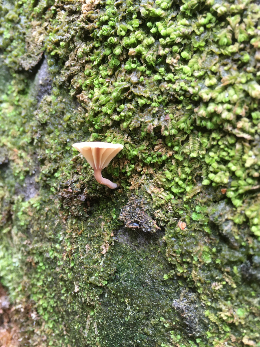 11 beim Abstieg ging es durch eine Klamm mit bemoosten Felstwänden. Hier fand ich viele dieser kleinen Gräle. Leider gelang es mir nicht makroskopisch eine Einordung zu treffen. Auffällig waren für mich der farblich abgesetzte dunklere und etwas ins orangerötlich tendierende Stiel mit basaler Aufquellung und teils sichtbaren Mycelfäden sowie die sehr entfernt stehenden Lamellen. Die Hutriefung war nur schwach ausgeprägt. So blieb ich bei Adermoosling oder Nabeling. kommt vielleicht eine Omphalina hin? Da sie hier wirklich massenhaft an fast allen Felsen vorkamen und die Gegend ja auch hochfrequentiert ist habe ich die Hoffnung dass sie vielleicht einer von Euch schon mal bestimmt hat und mir einen Tip geben kann in welche Richtung es geht?