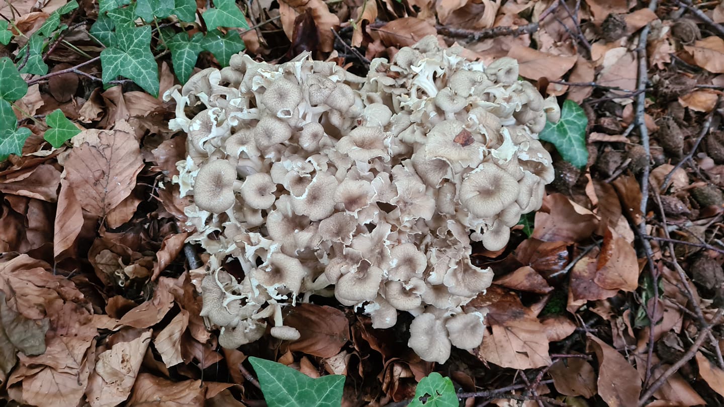 Los ging es mit einem Eichhasen, polyporus umbellatus (insgesamt 6 Fruchtkörper)