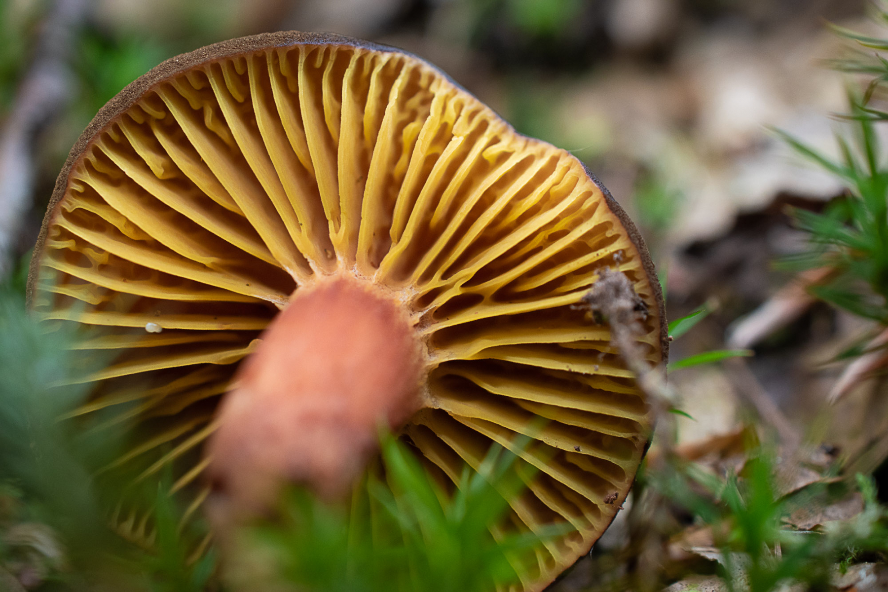 Dann haben wir heute etwas gefunden, was ich beim flüchtigen Blick unters Röckchen für einen Rotfußröhrling hielt ( unter den Hut direkt hab ich nicht geschaut, habe nur den roten Fuss gesehen und ihn dann lieber stehen lassen..) Auf dem Rückweg kamen wir erneut dran vorbei und Annette schaute richtig hin - und tada, es war ein Goldblatt! Das ist jetzt ein bisschen peinlich für mich, aber ich gönne euch den Lacher ![]()