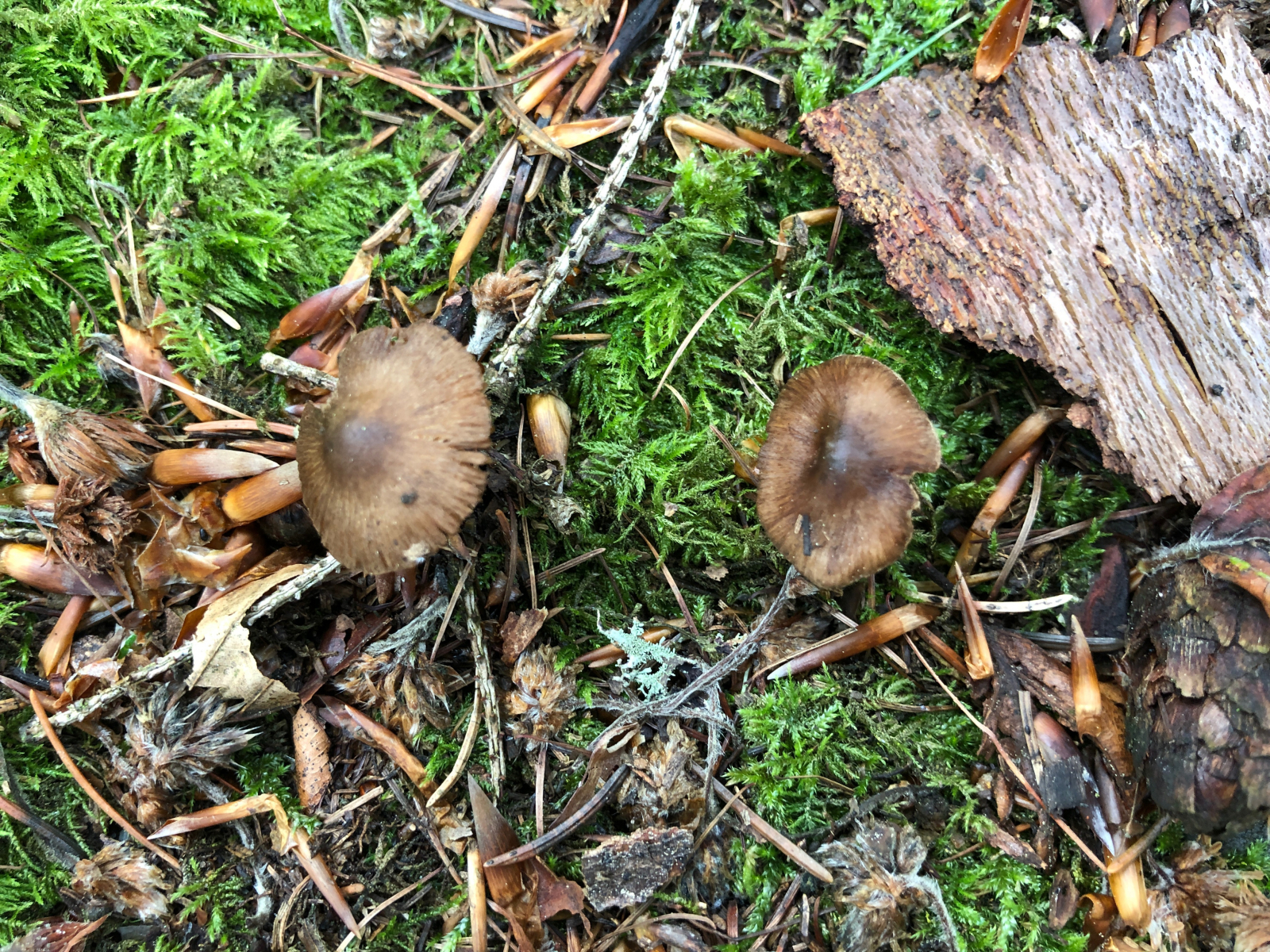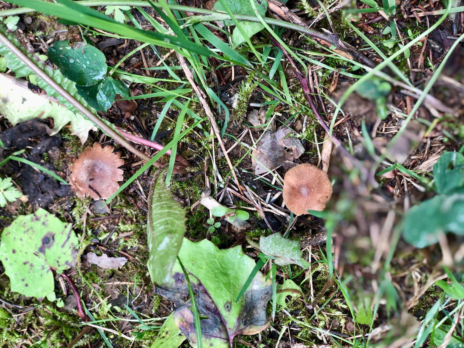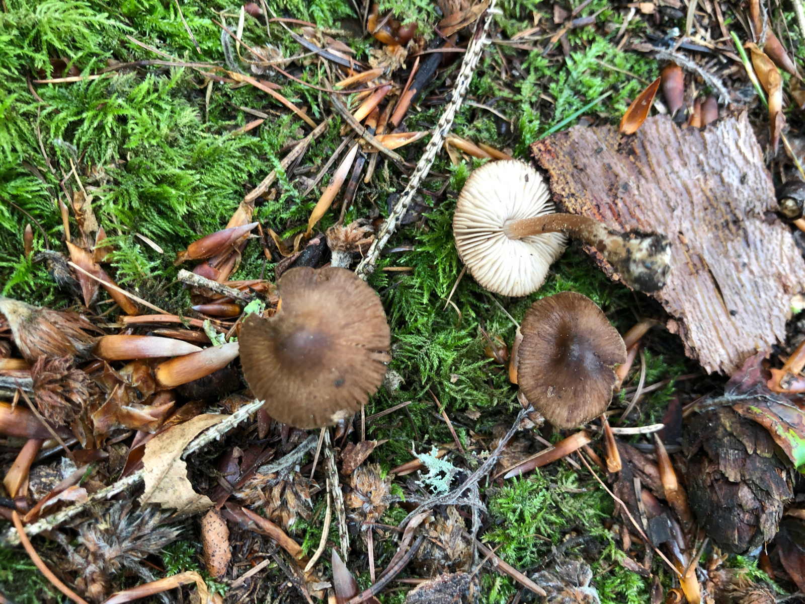 Der erste Kandidat schien noch relativ einfach herauszufinden. Ich vermute Inocybe lacera - den Spindelsporigen Risspilz. Unter Fichten, Birken und Bergahorn. Spermatischer Geruch, nach Keller. Diese Art habe ich mehrfach an verschiedenen Standorten gefunden.