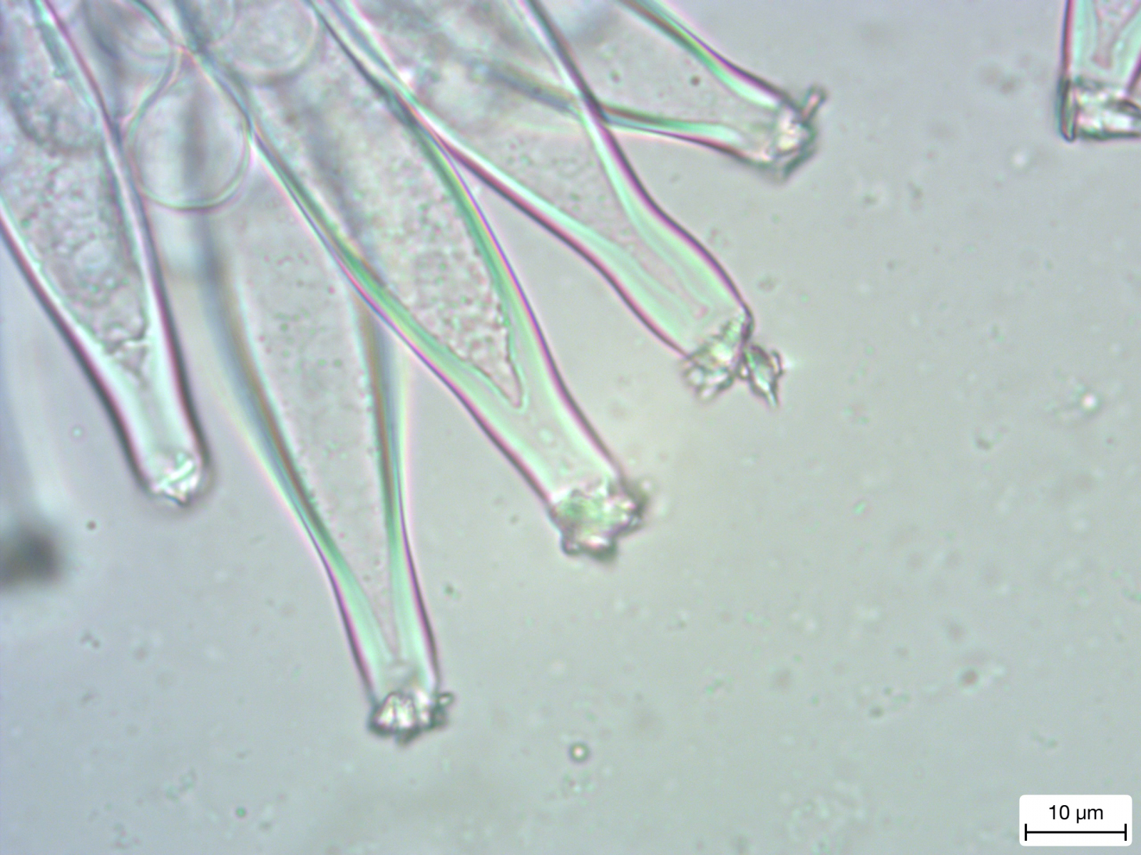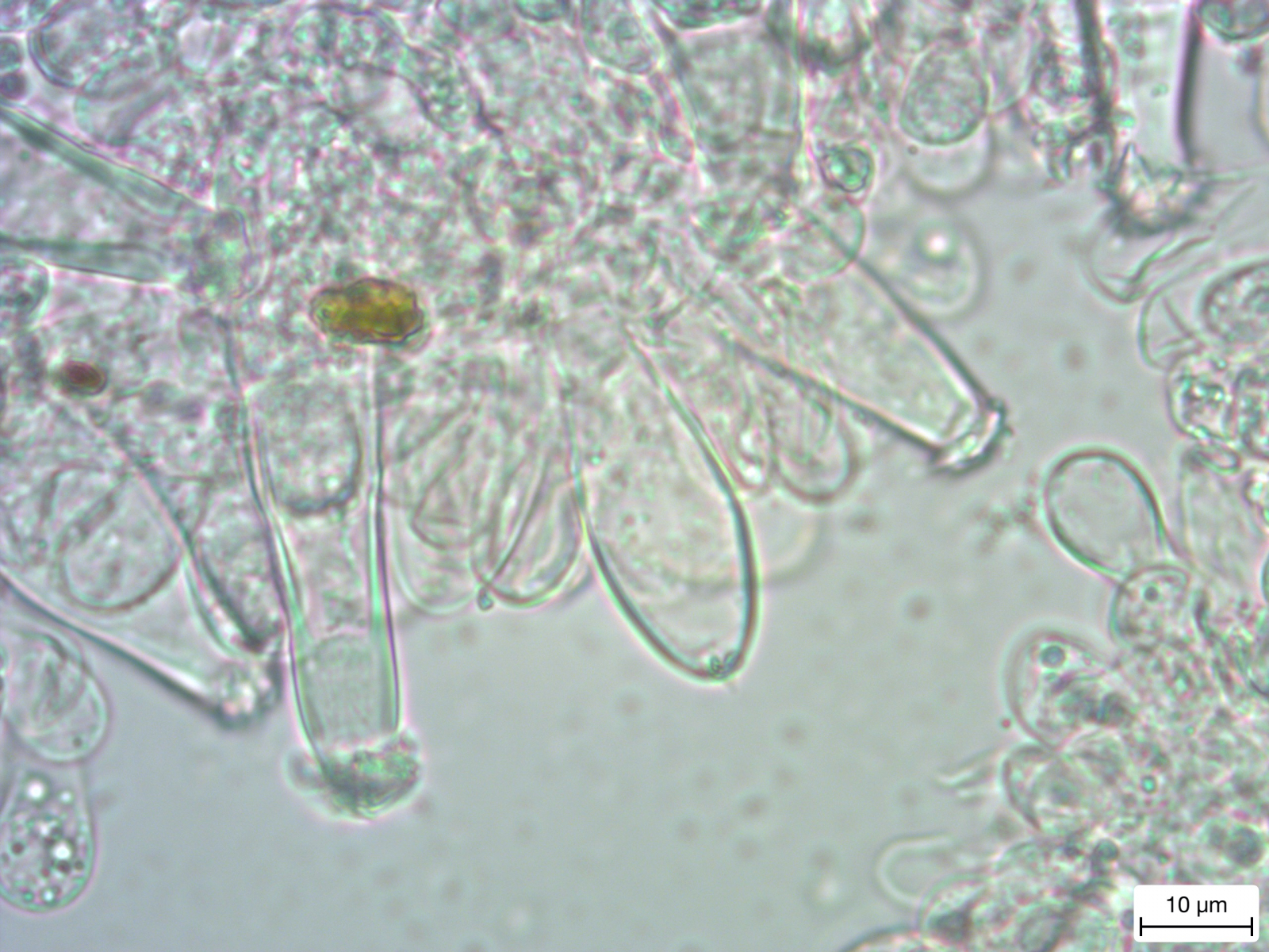 Ich habe eine ganze Menge mehr Fotos gemacht, aber nicht alle eingestellt, weil ich den Thread nicht überfrachten wollte. Das nächste Mal packe ich mehr rein. Und ja, es stimmt. Mir ist auch aufgefallen, dass die Zystiden von ein und demselben Pilz mitunter recht unterschiedlich aussehen.