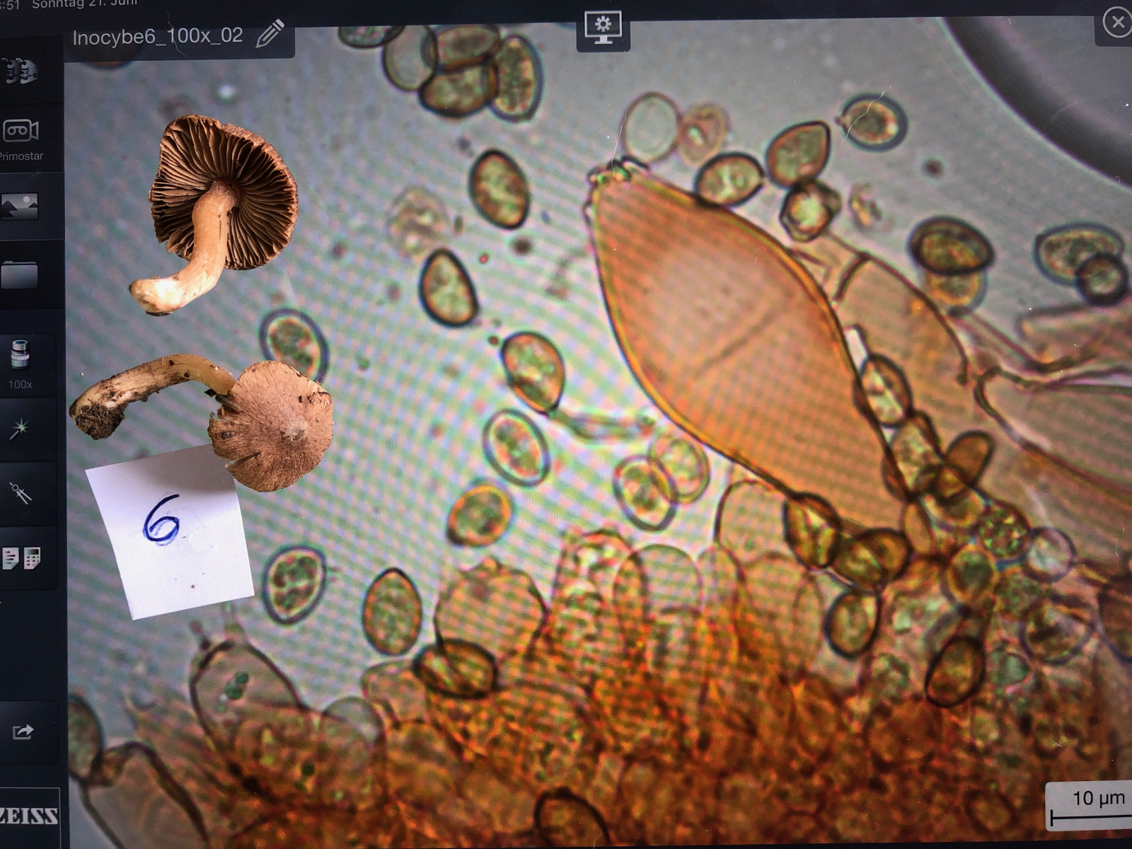 Ansonsten ist mir persönlich aufgefallen, dass du auf deinen sehr schönen Mikrobildern leider viel zu wenig Zystiden zu sehen sind. Mach ruhig ein paar Bilder mehr so habe ich, bzw. haben wir dann einen besseren Eindruck über die Form und die Wanddicke etc., da die Zystiden bei Inocybe durchaus sehr variabel innerhalb eines FK sein kann. Wenn nur eine Zystide zu sehen ist und die untypisch ist, dann erschwert das die Bestimmung.