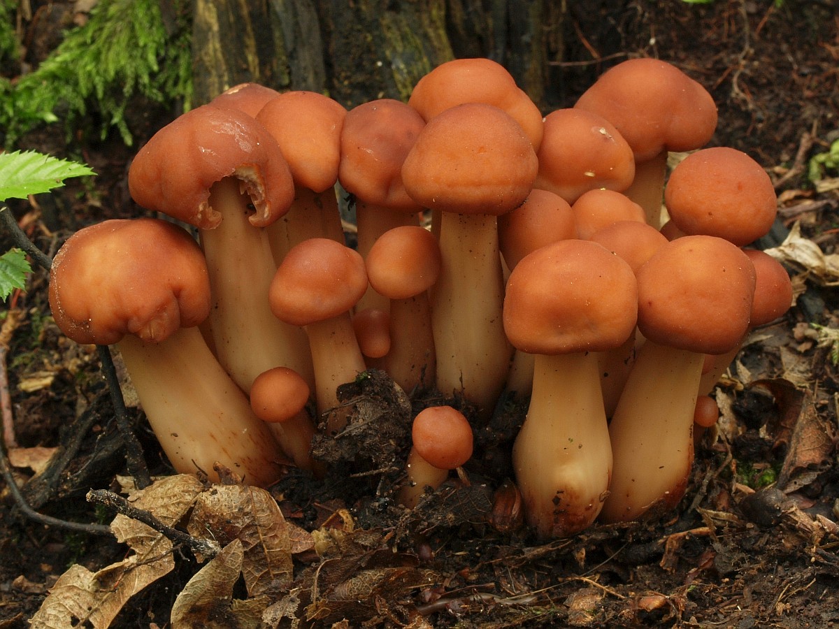 Normalerweise lege ich beim Fotografieren von Gruppen ungern den größten Pilz um, weil das für meinen Geschmack das Bild etwas "zerschlägt". In diesem Fall habe ich eine Ausnahme gemacht, da ich die schöne Gruppe nicht auseinander reißen wollte und es stand eben nur noch ein großes Einzelexemplar zur Verfügung.