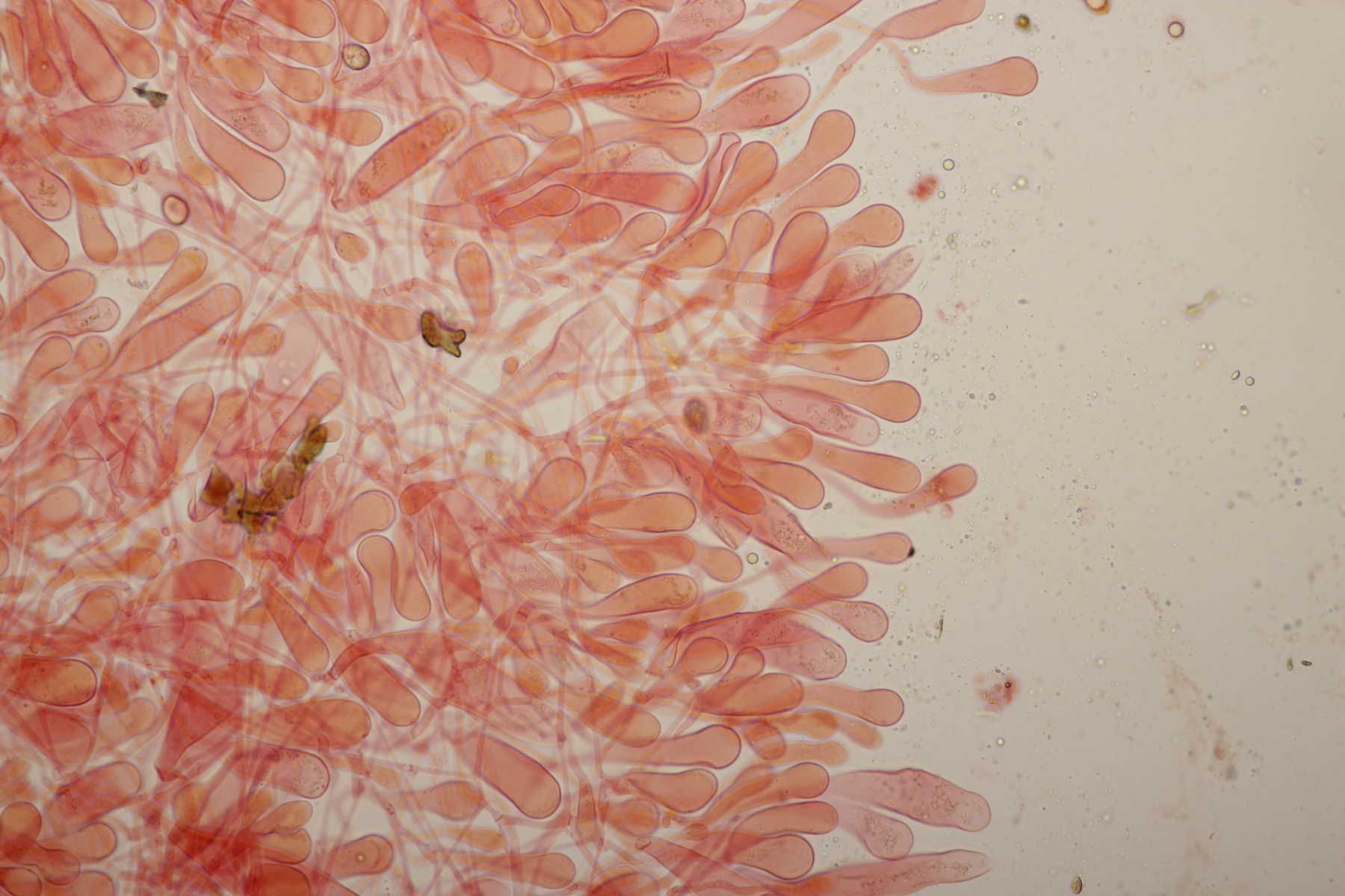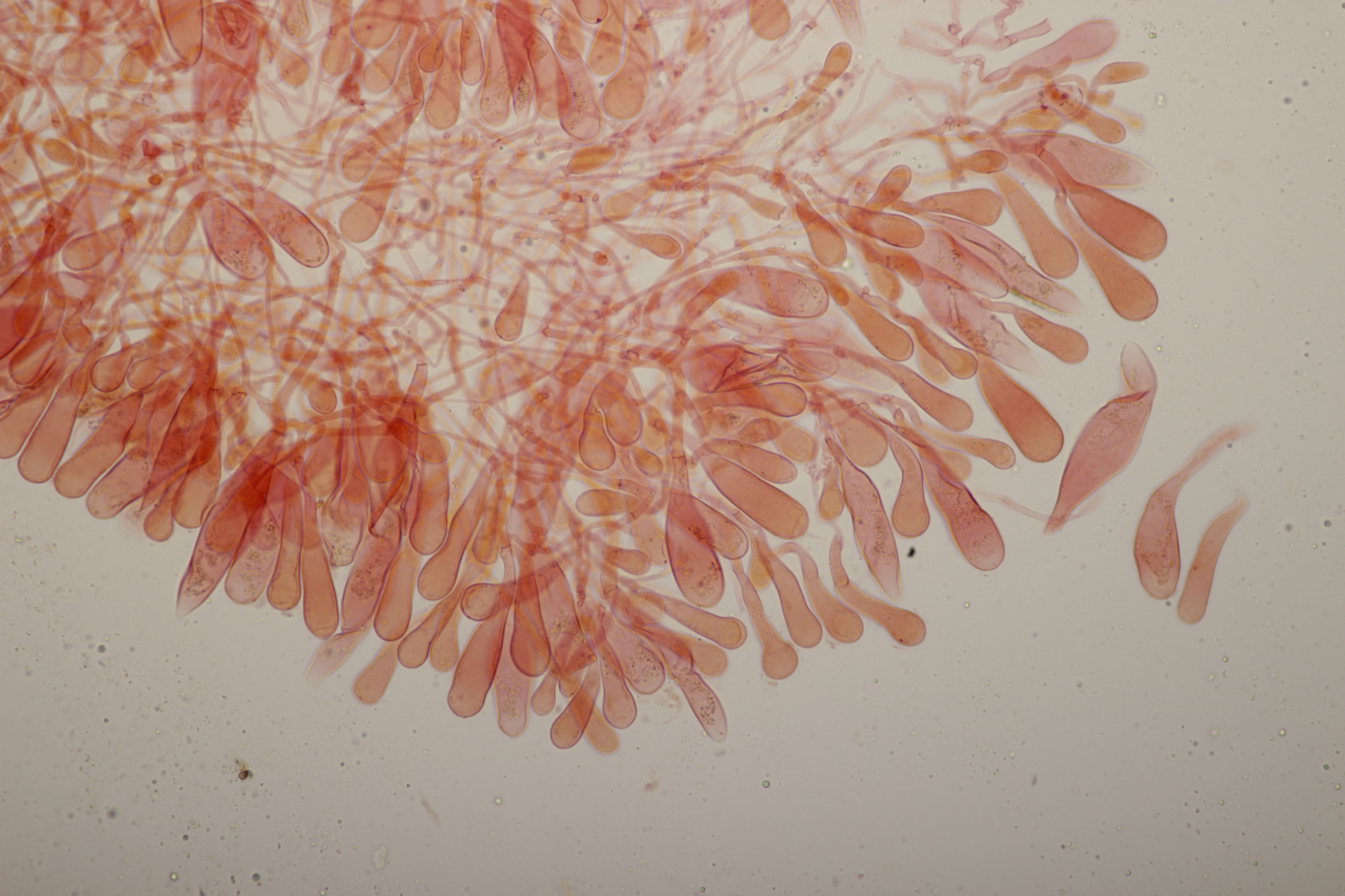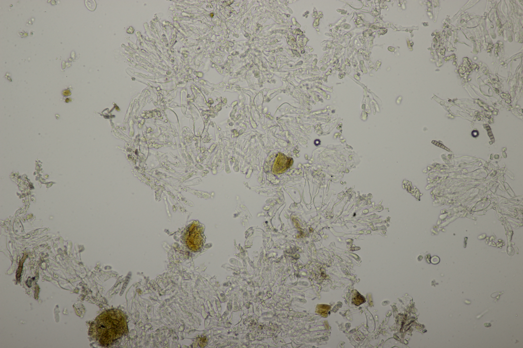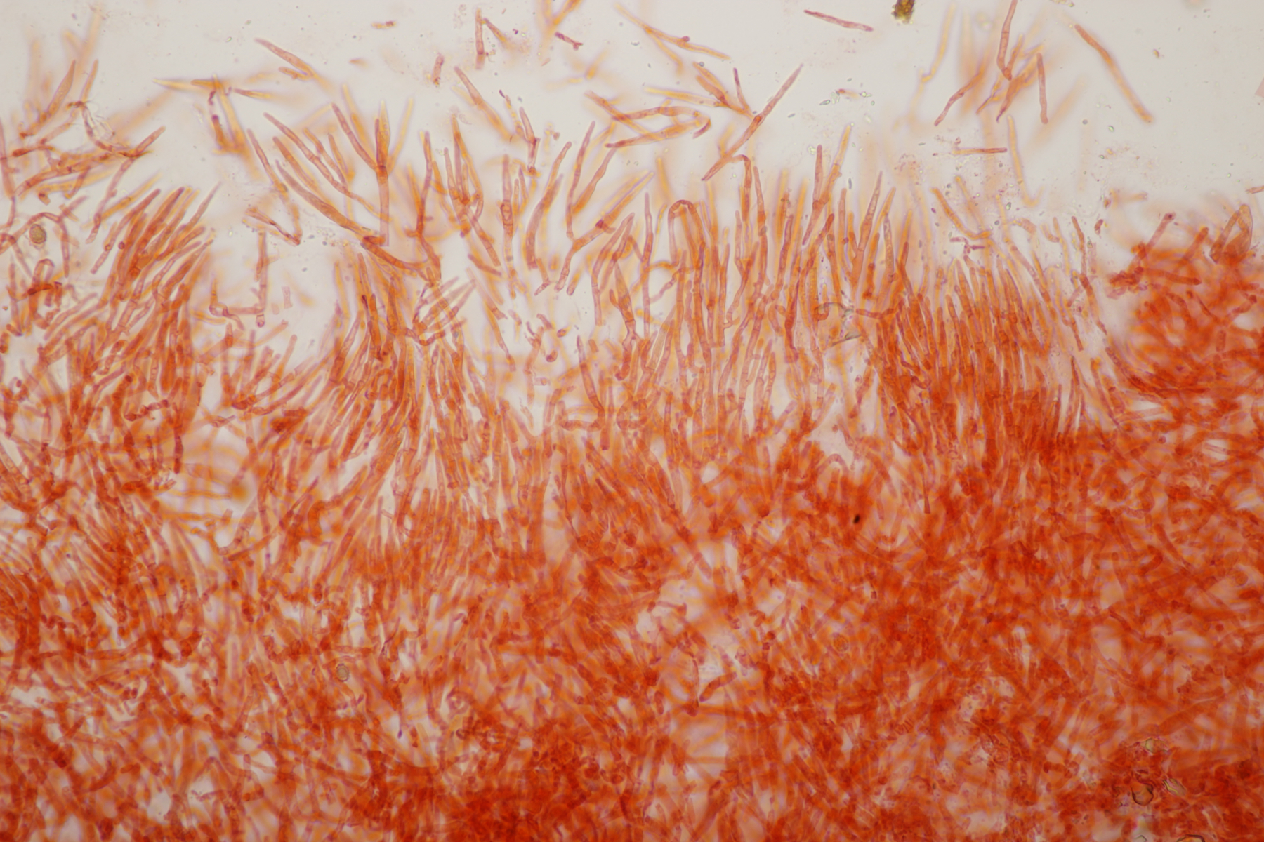 1. Hier hatte ich bis jetzt nur mal schnell reingeschaut. Vielleicht etwas Richtung Peniophorella? Schnallen vorhanden, Basidien mit Basalschnalle, Zystiden vorhanden. Teilweise wirkten die wie Gloeozystiden (allerdings ohne SV-Reaktion), teilweise waren sie unten bauchig verdickt und nach oben lang ausgezogen, teilweise saß oben ein Kristallschopf drauf.
