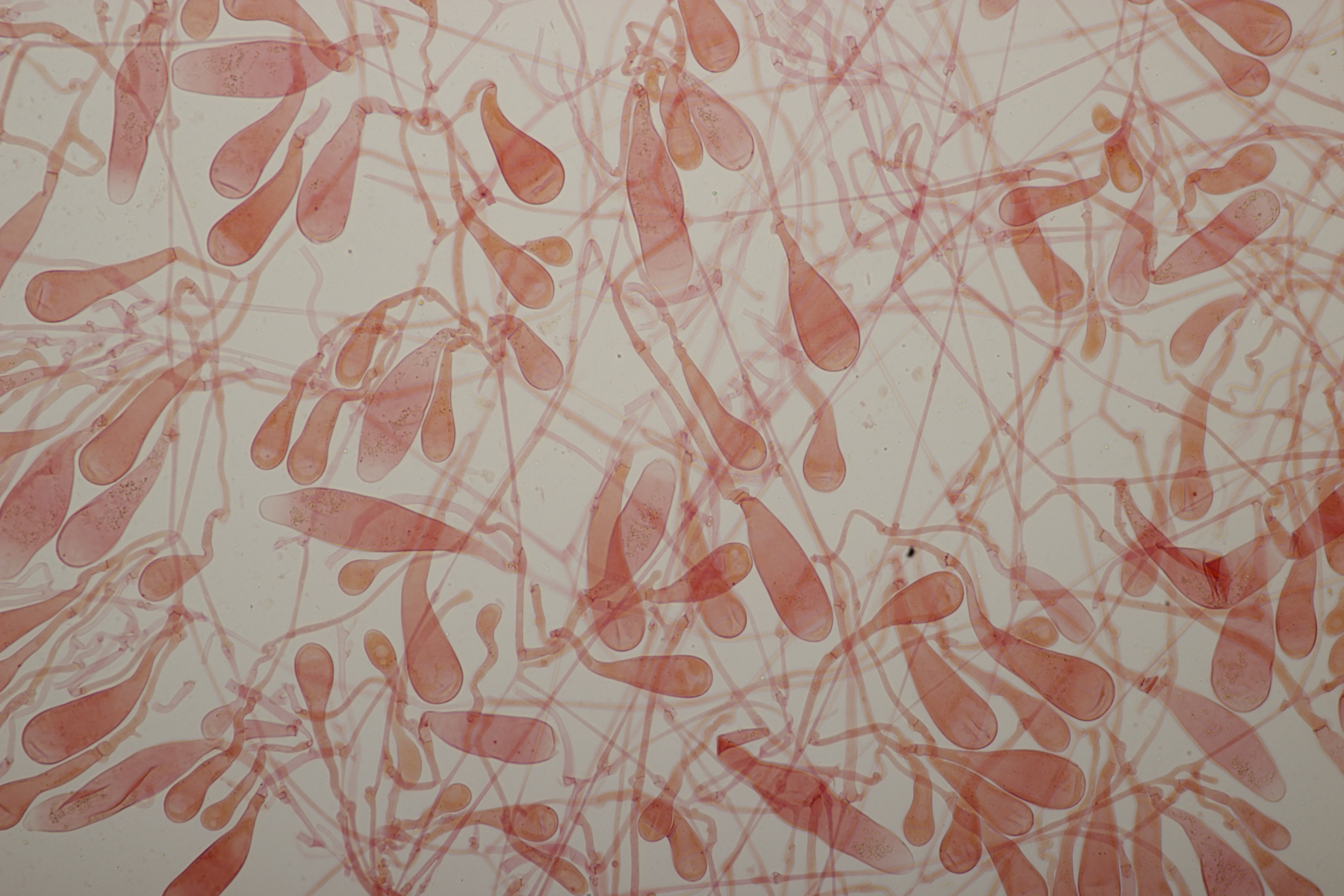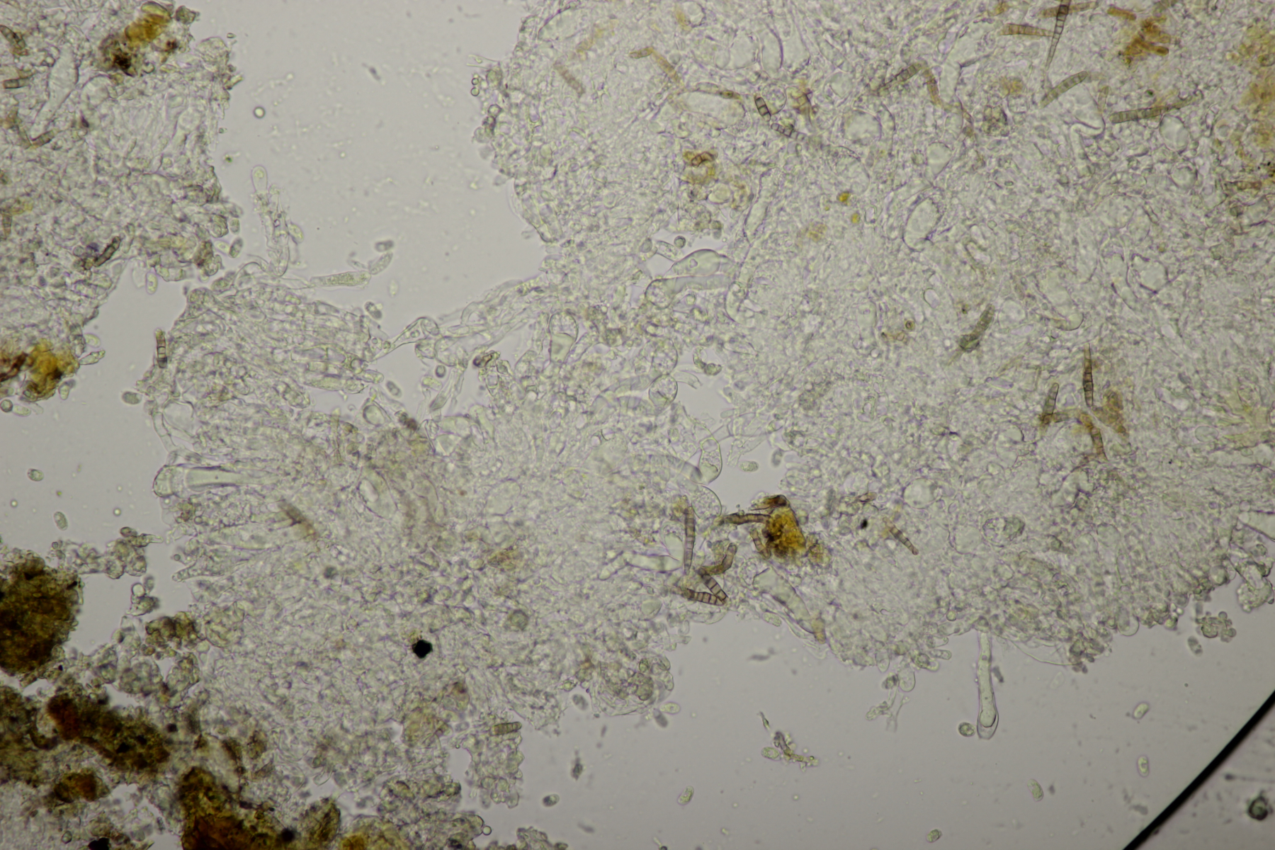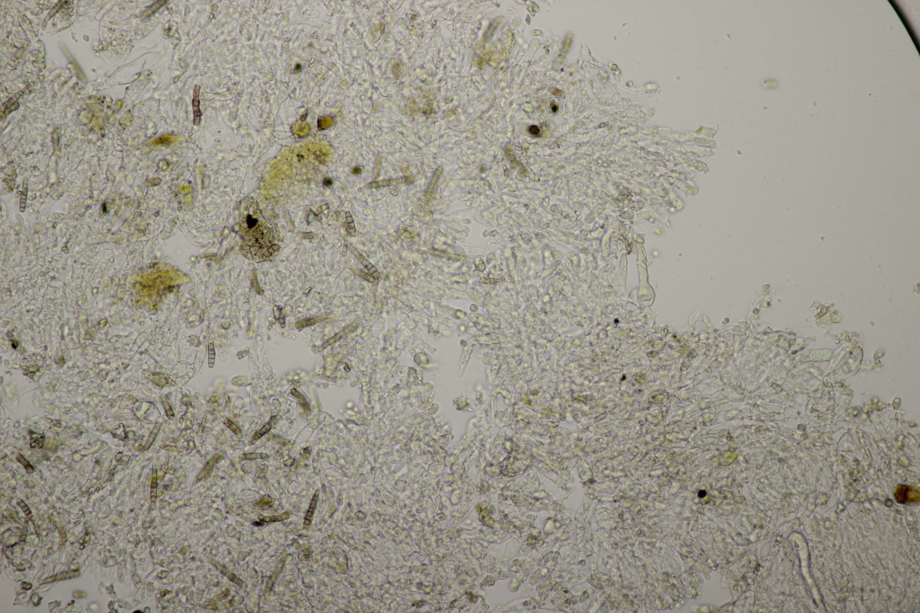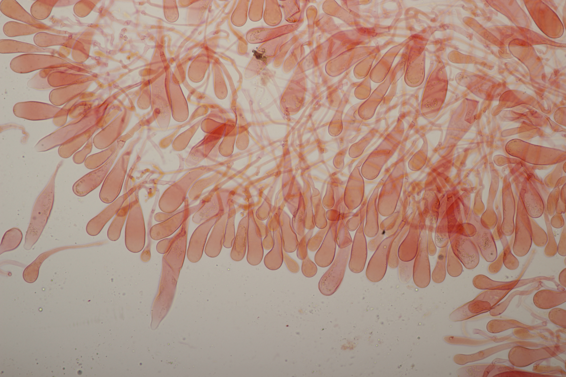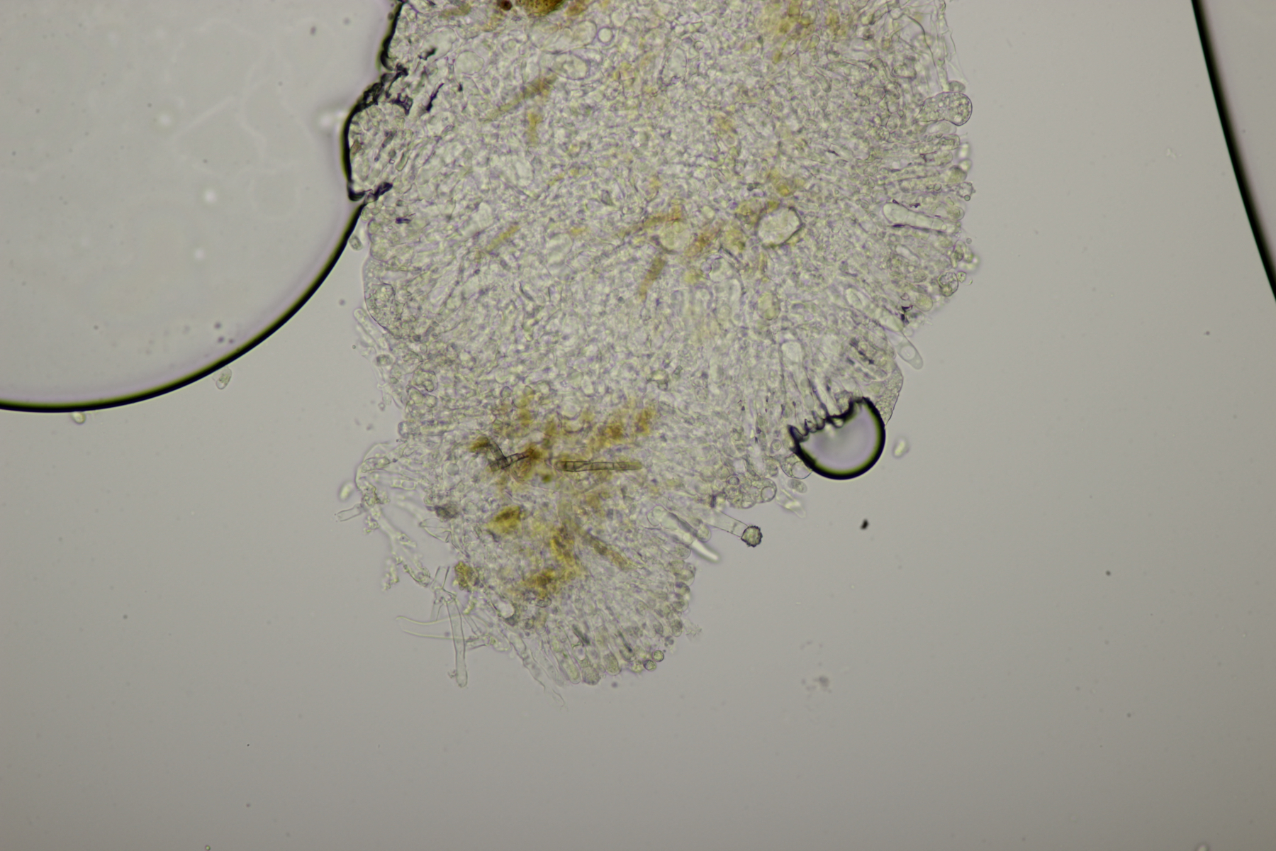 1. Hier hatte ich bis jetzt nur mal schnell reingeschaut. Vielleicht etwas Richtung Peniophorella? Schnallen vorhanden, Basidien mit Basalschnalle, Zystiden vorhanden. Teilweise wirkten die wie Gloeozystiden (allerdings ohne SV-Reaktion), teilweise waren sie unten bauchig verdickt und nach oben lang ausgezogen, teilweise saß oben ein Kristallschopf drauf.