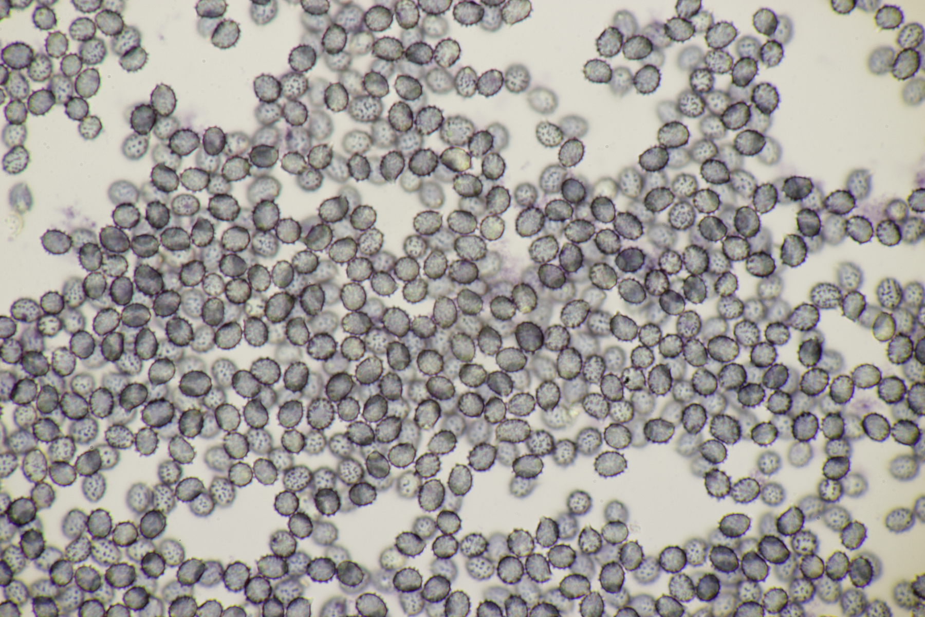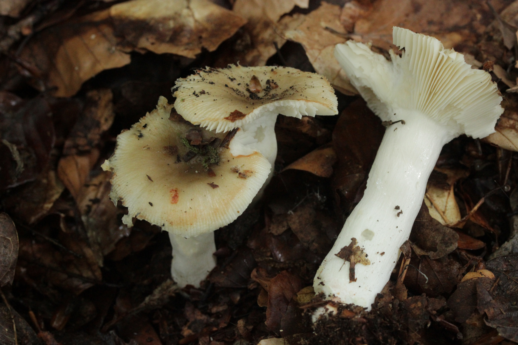 3. Russula recondita. Unter Buche und Eiche, mit roten Flecken an der Stielbasis, starke Reaktion mit Guajak, mit Eisensulfat orange-rosa, keine Reaktion der Stielbasis mit Ammoniak oder KOH. Sporenpulver IIc