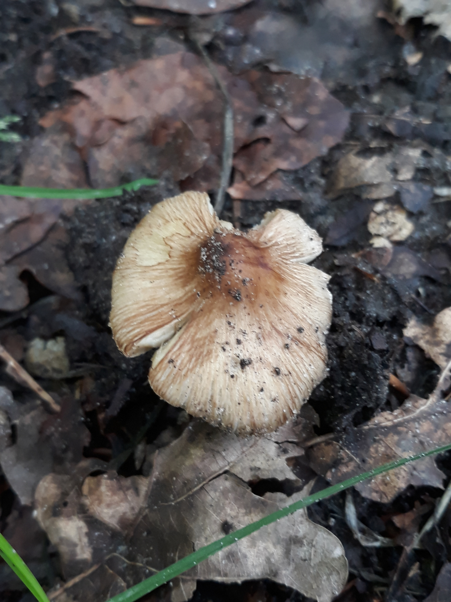 diesen Risspilz habe ich eher zufällig gestern beim Joggen gesehen und konnte es nicht lassen, zwei Fruchtkörper mitzunehmen. Sie wuchsen gesellig mit bis zu 10 Fruchtkörpern an einem Seitenrand eines Feldweges, der von diversen Sträuchern und Laubbäumen bewachsen ist. (Eiche, Birke, Kirsche, Buche)