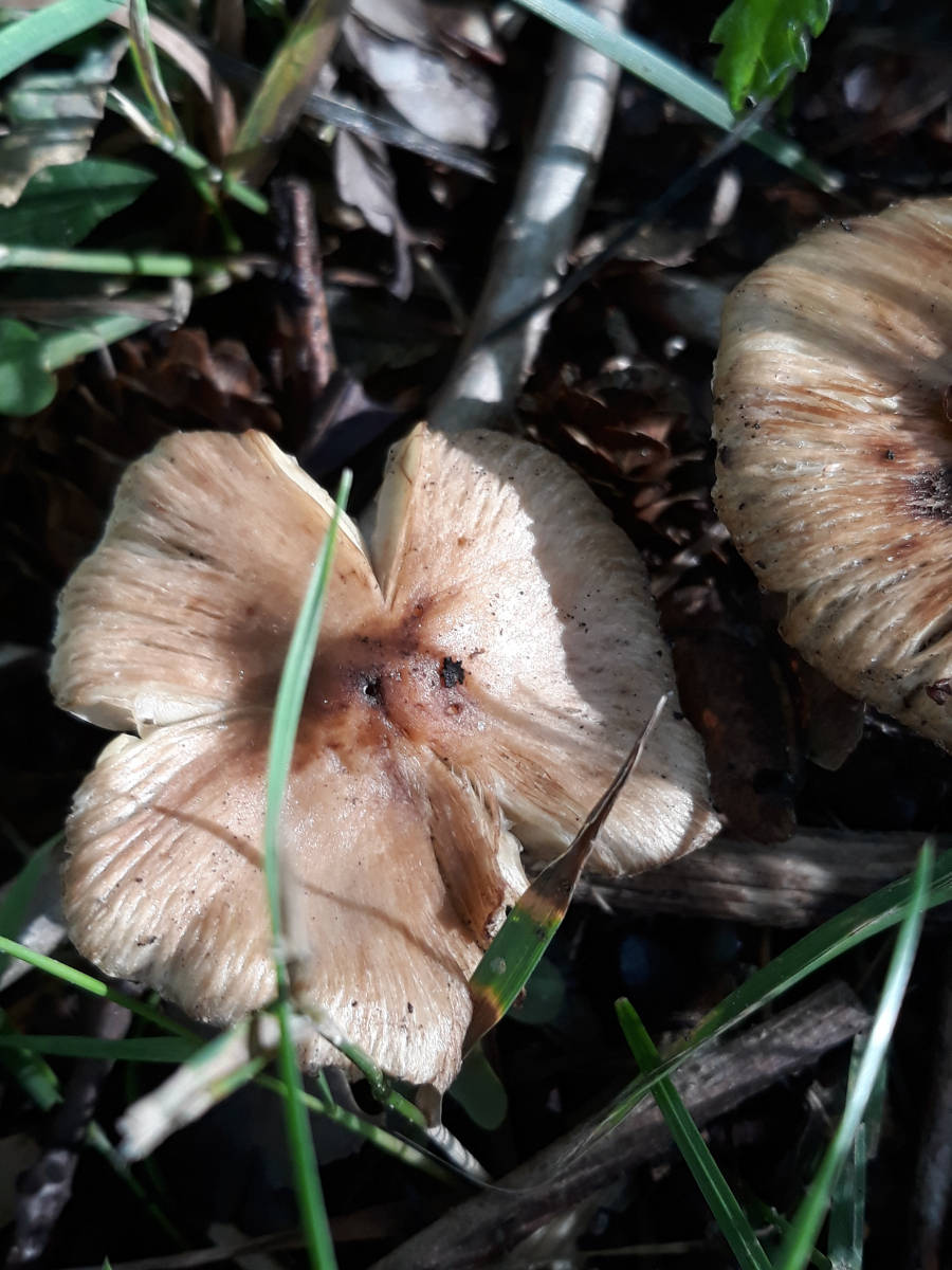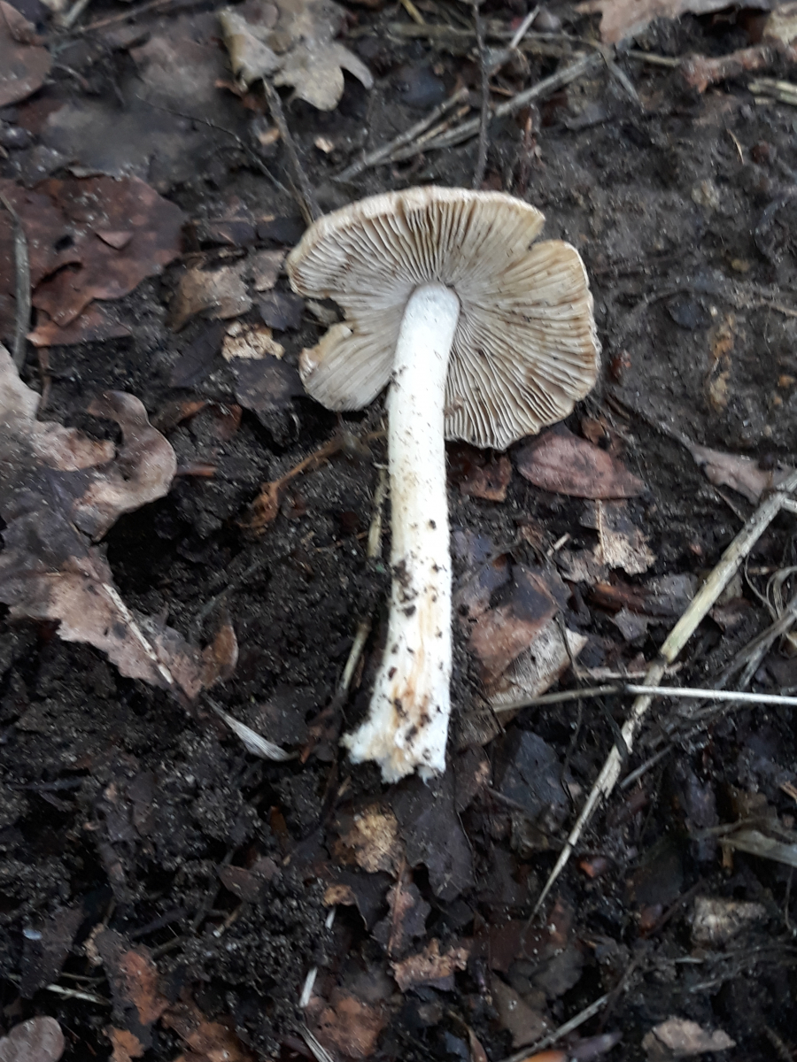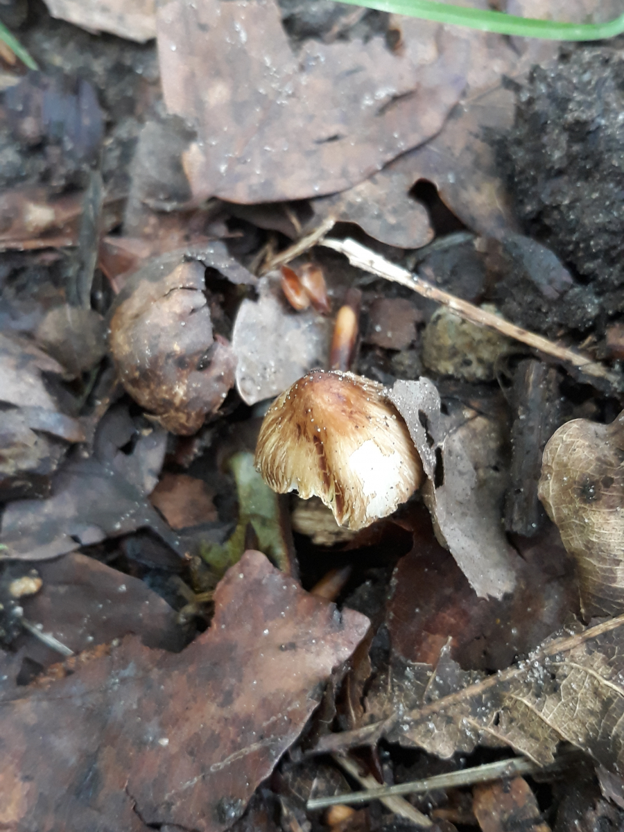 diesen Risspilz habe ich eher zufällig gestern beim Joggen gesehen und konnte es nicht lassen, zwei Fruchtkörper mitzunehmen. Sie wuchsen gesellig mit bis zu 10 Fruchtkörpern an einem Seitenrand eines Feldweges, der von diversen Sträuchern und Laubbäumen bewachsen ist. (Eiche, Birke, Kirsche, Buche)