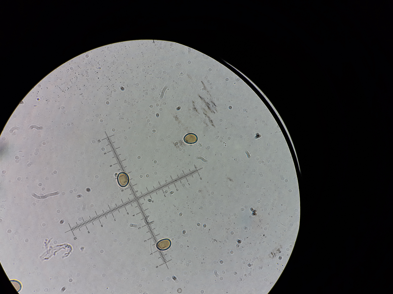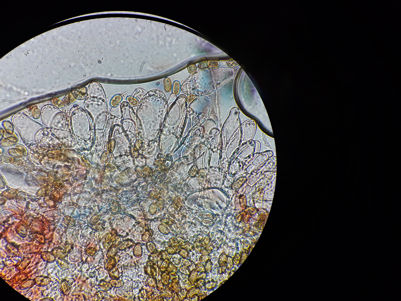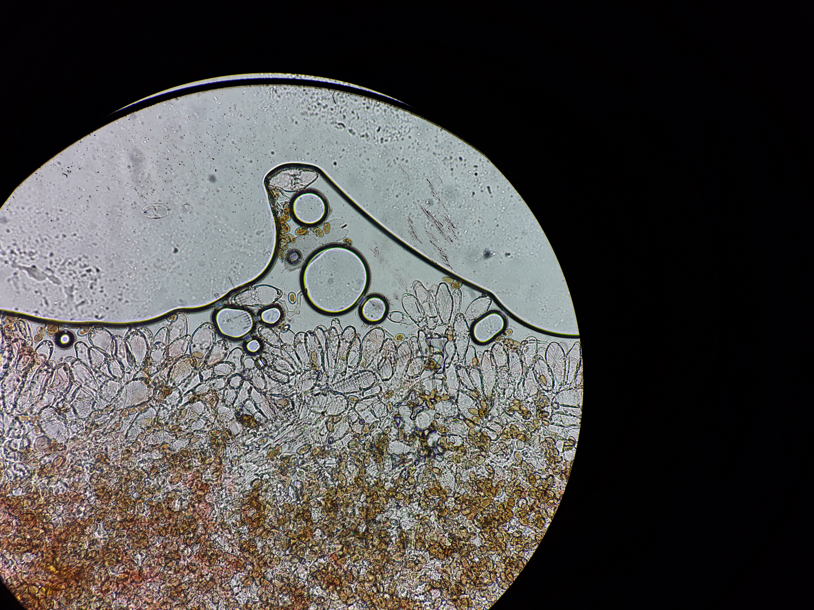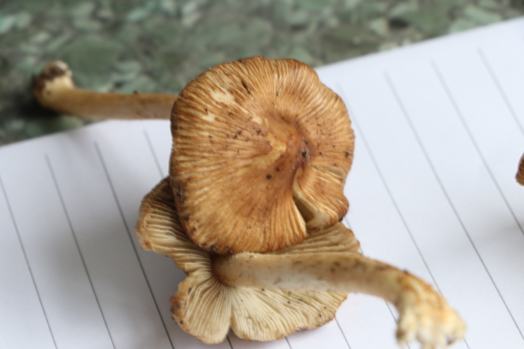 Der Stiel war weiß-ockerlich-gelb, wobei die Basis leicht gebogen und leicht angeschwollen ist. Bereift war er nur oben.