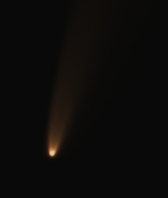 Man sieht gut den dunklen Streifen im Schweif. Ich habe ein bisserl recherchiert und gefunden, dass die innere Coma sehr dicht ist und sich da offenbar einiges tut - es gibt Spiralstrukturen, die auf eine schnelle Rotation hinweisen (etc.). Insofern könnte das der Schatten der inneren, dichten Coma sein? Das Foto ist vom 10. Juli 2020 (gestackt, aber nicht digital nachbelichtet, damit dieser hellste Bereich des Schweifs nicht überbelichtet ist.