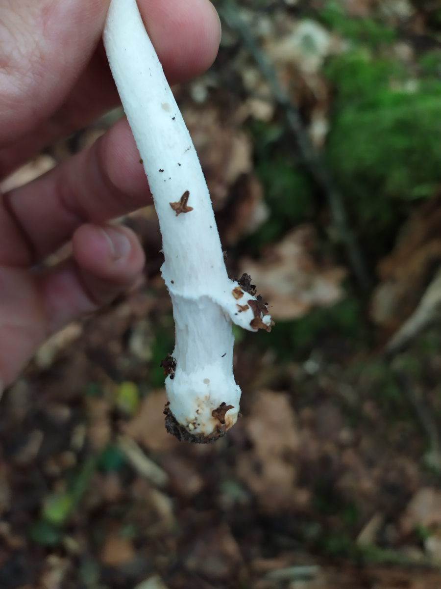 Hallo liebe Pilzgemeinde, bin gerade im Wald unter einem pilz ( aus Holz ) und trinke gemütlich eine Tasse Tee. Ahja und ich habe gerade einen neuen Pilz ( für mich ) entdeckt, den ich als Amanita beckeri ( hellflockiger streifling ) bestimmt habe bzw stark vermute, was meint ihr?? Ich finde es passt, lasse mich aber gerne eines besseren belehren. Da ich gelesen habe das der Pilz stark gefährdet ist, habe ich ein bisschen schlechtes Gewissen, da ich einen Fruchtkörper ( den größten) zur Bestimmung, aus dem Boden entnommen habe. Dafür habe ich den Hut dann etwas höher platziert damit er gut seine Sporen fliegen lassen kann