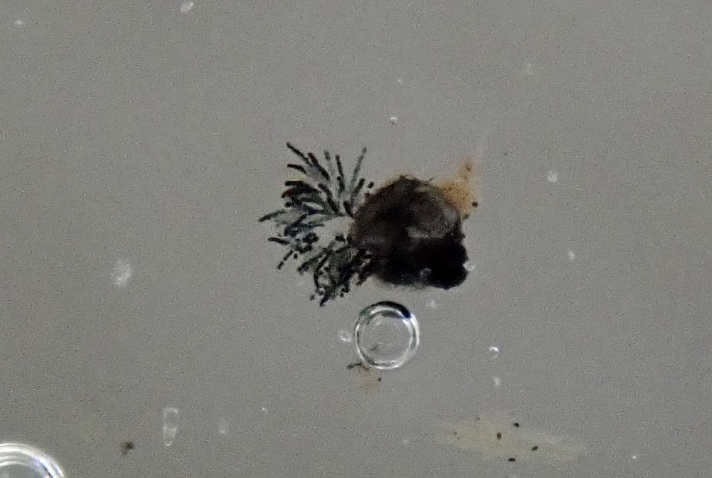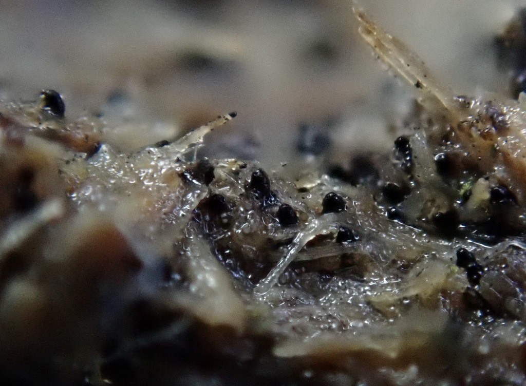 Am Rande eines Rudels Lasiobolus ciliatus guckten da massenweise um die 0,3 mm kleine schwarze Pyrenos aus dem Schafdung.