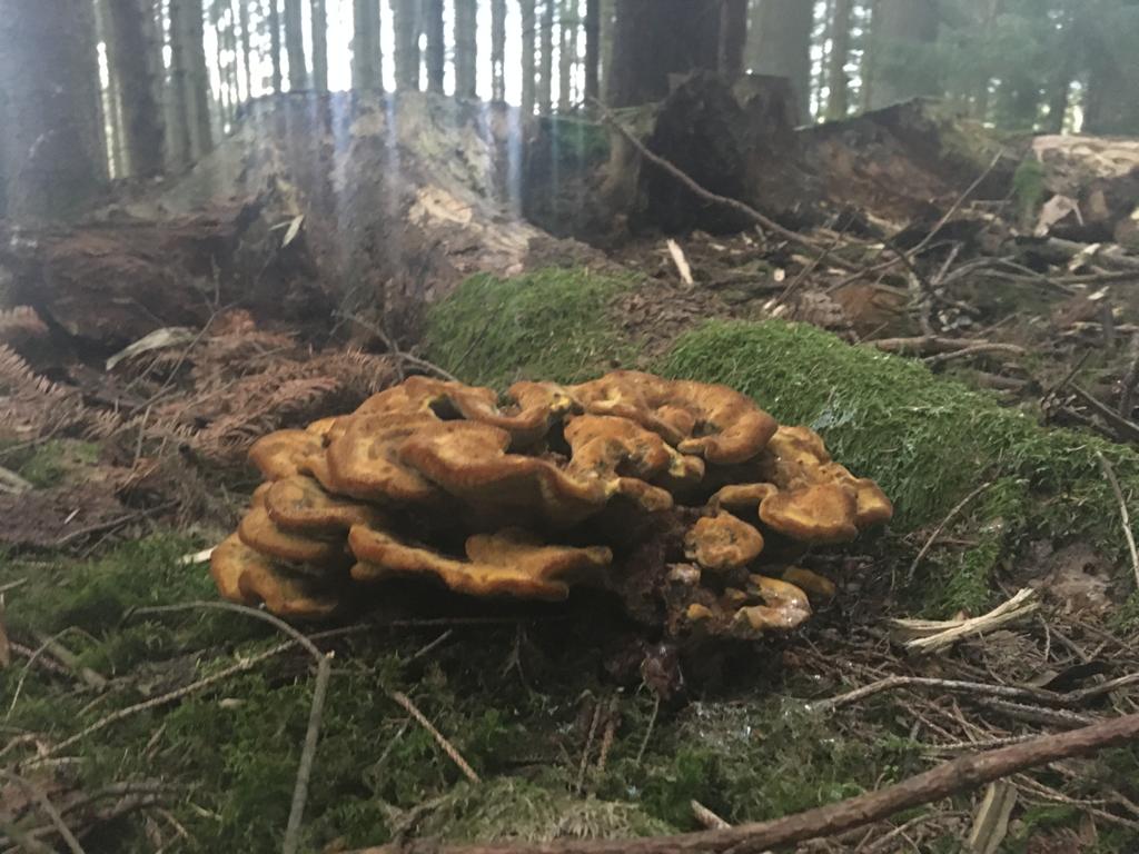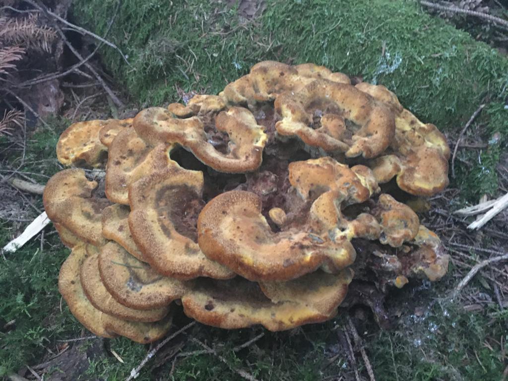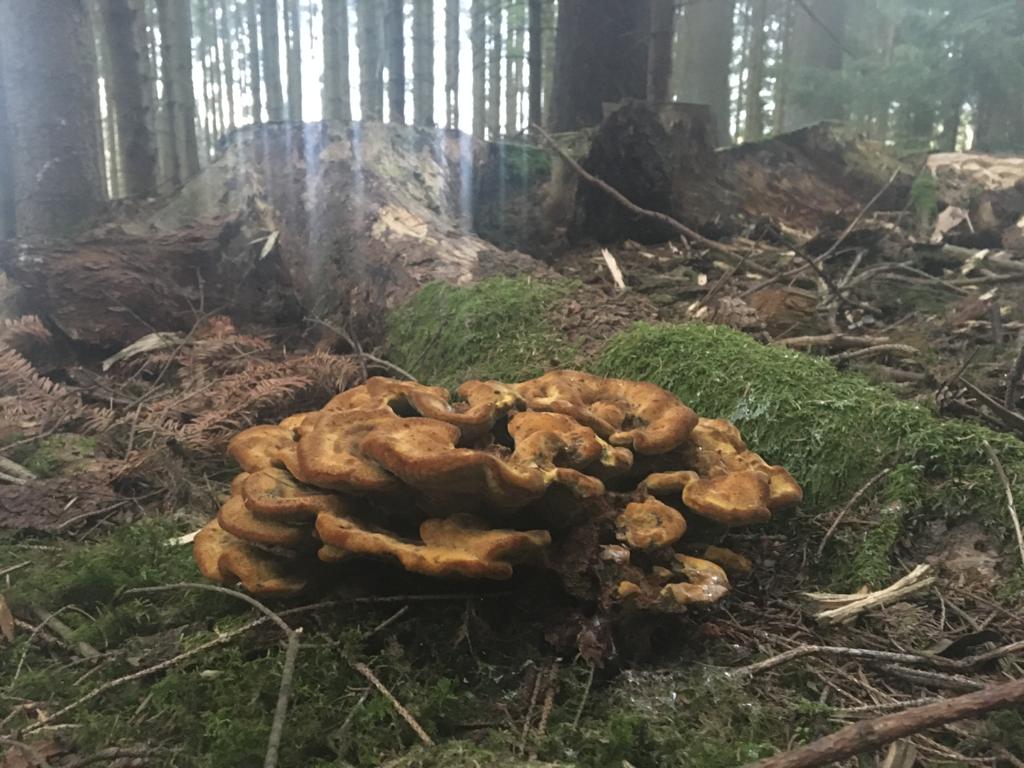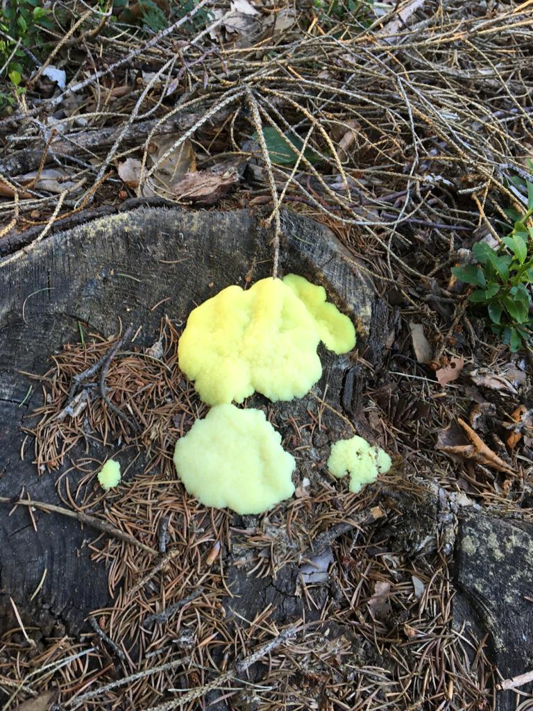 dein Porling ist mit Sicherheit Phaeolus schweinitzii; der Schleimpilz sieht von weitem so aus, wie Gelbe LohblĂŒte, allerdings will mir da die Feinstruktur nicht gefallen...