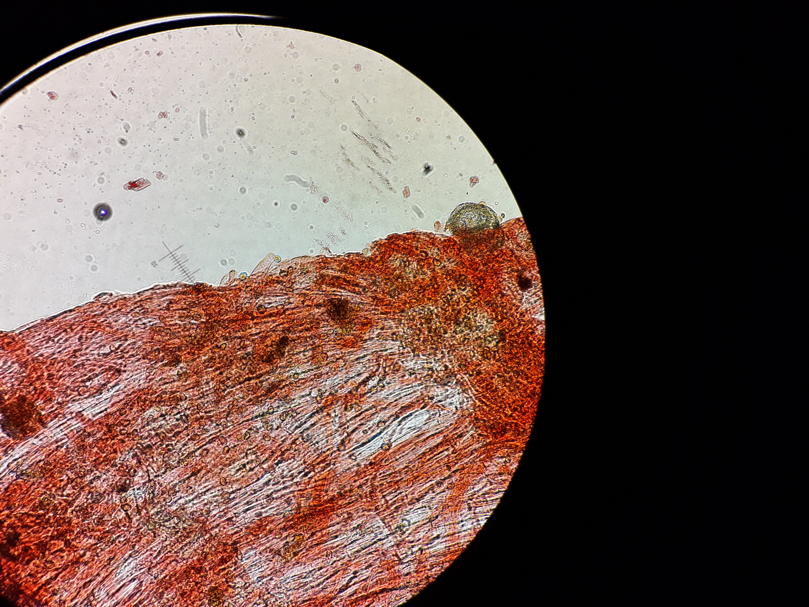 Der Stiel war zumindest bis ins untere Drittel bereift, vom unteren Drittel stammt die Aufnahme der Kaulozystiden.