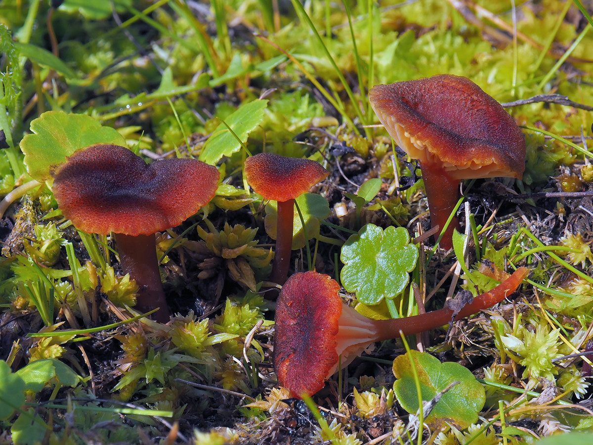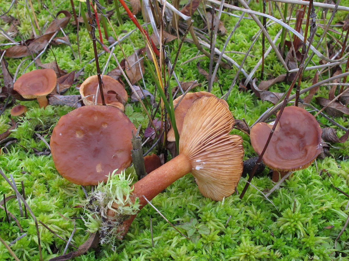 Erwähnt sei noch, dass der Torfmoos-Saftling an diesem Fundort aktuell mit keinem anderen Pilz vergesellschaftet war. Später im Jahr erscheint hier aber in großer Zahl der Pfützen-Milchling (Lactarius lacunarum), das folgende Foto stammt aus dem Oktober 2019.
