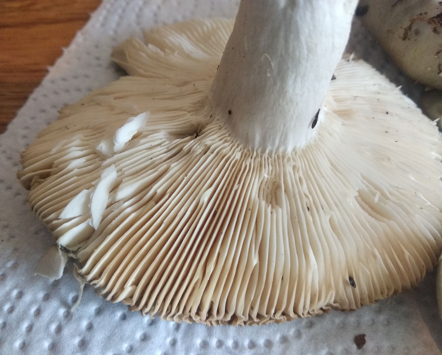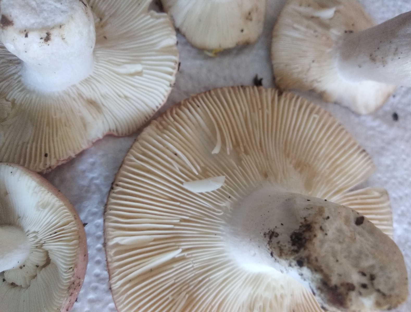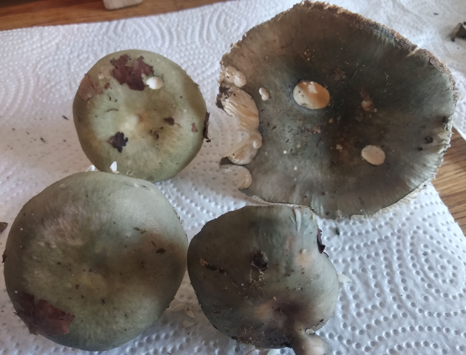 Ich glaube hier Frauen-Täublinge gefunden zu haben? Allerdings steht in meinem Büchlein, dass die Lamellen nicht splittern, bei den jüngeren Exemplaren tun sie es auch nicht, allerdings bei dem etwas älteren, da fliegen sie einem quasi nur so um die Ohren, auch kann ich unter der Huthaut keine rosaviolette Färbung erkennen. Vielleicht gucke ich an der falschen Stelle