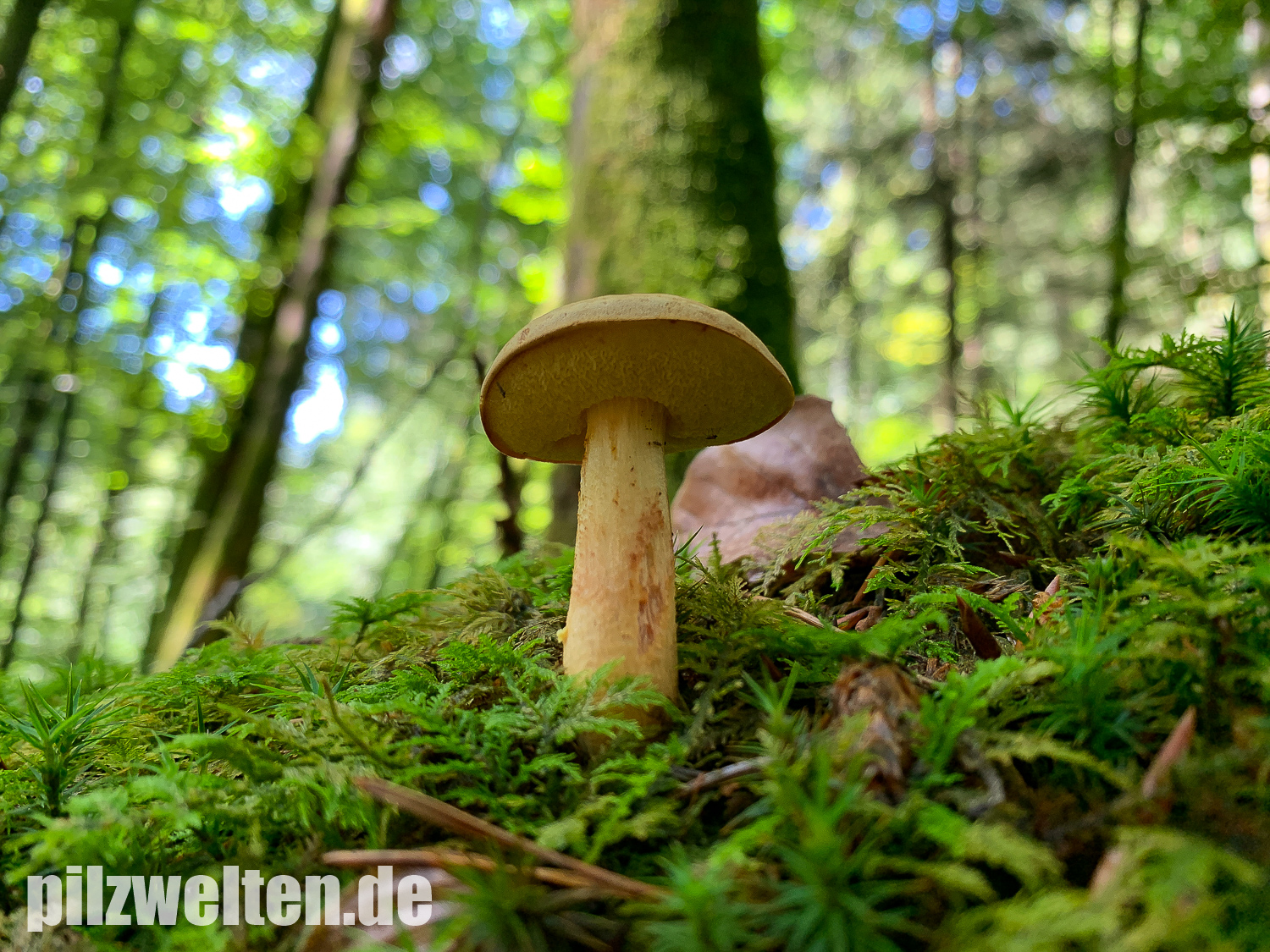 - Der helle, zur Basis zugespitzte Stiel ohne Netz und ohne leuchtend gelbliche Basismyzelfäden