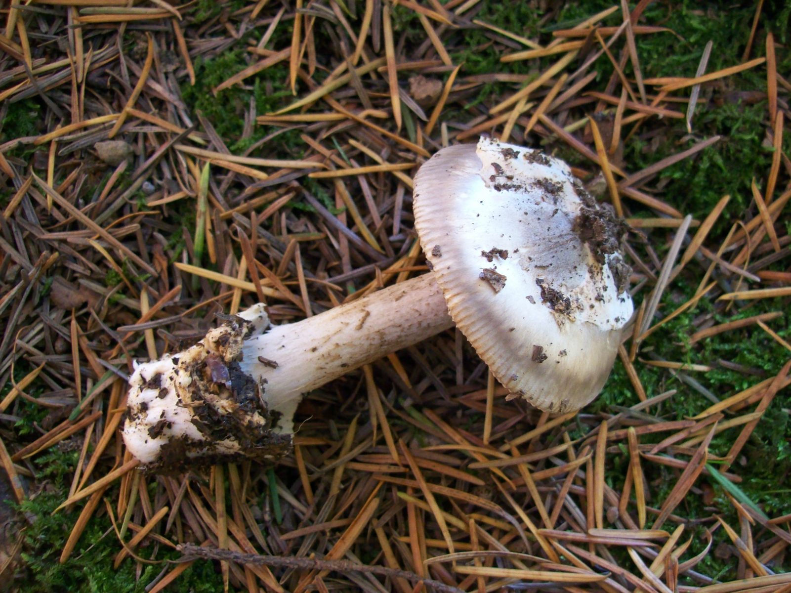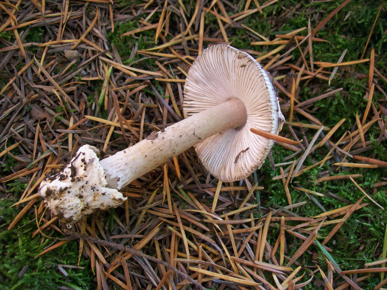 Bin stark bei A. umbrinolutea . Bei Bild Vergrößerung ist Rostfarbe - Flecken an Volva zu sehen - Hutrand gereift - Hut mehrfarbig , auch passt Nadeln ( Fundort Fichtenwald )