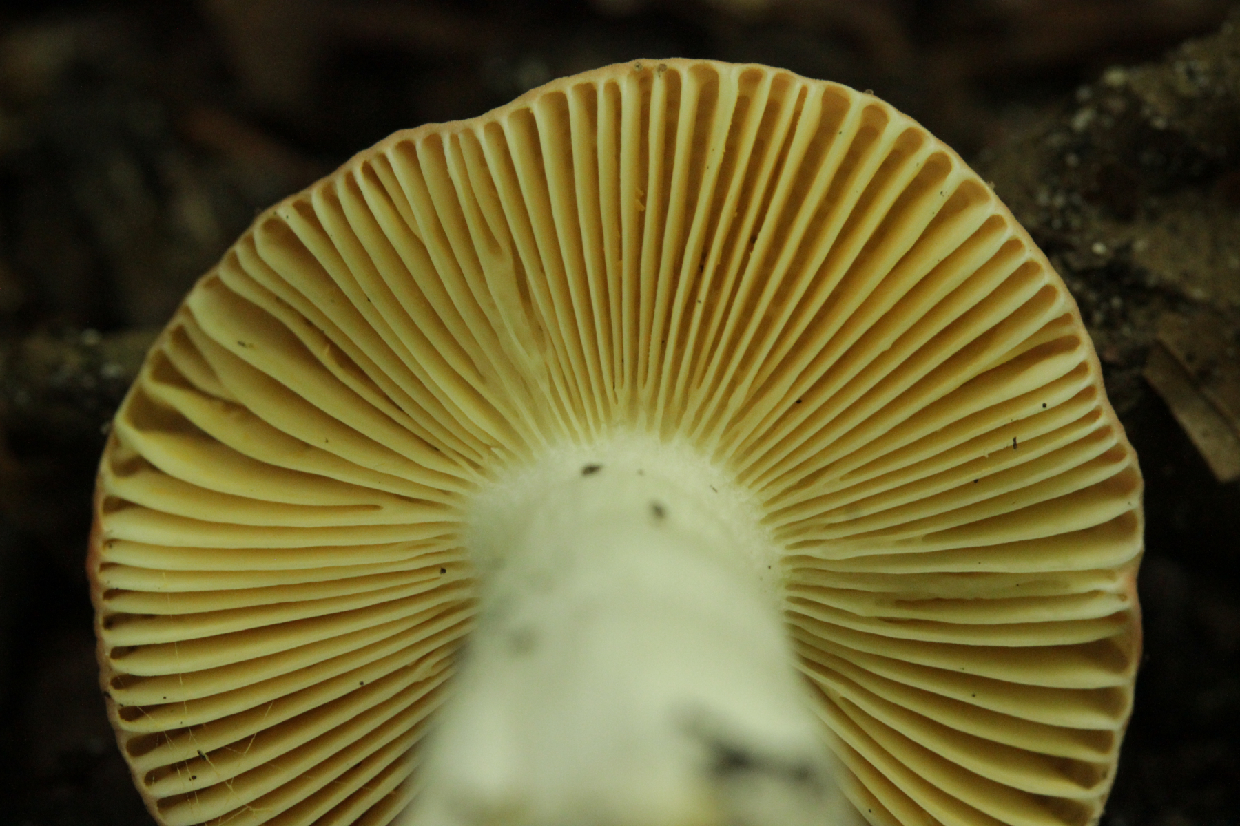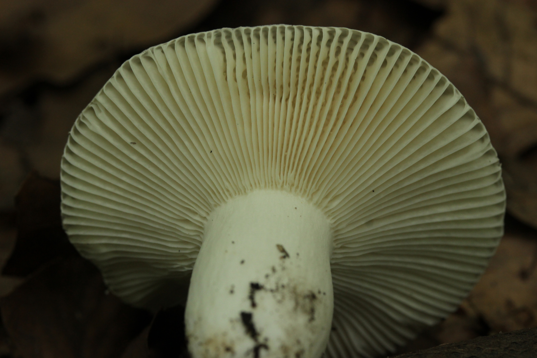 5. Täubling unter Quercus und Fagus, Geschmack mild, aber irgendwie metallisch, mit Guajak nach 5 Sekunden einsetztende Reaktion, mit Eisensulfat relativ zügig orange. Sporenpulver IVe. Gibt es Einwände gegen Russula risigallina?