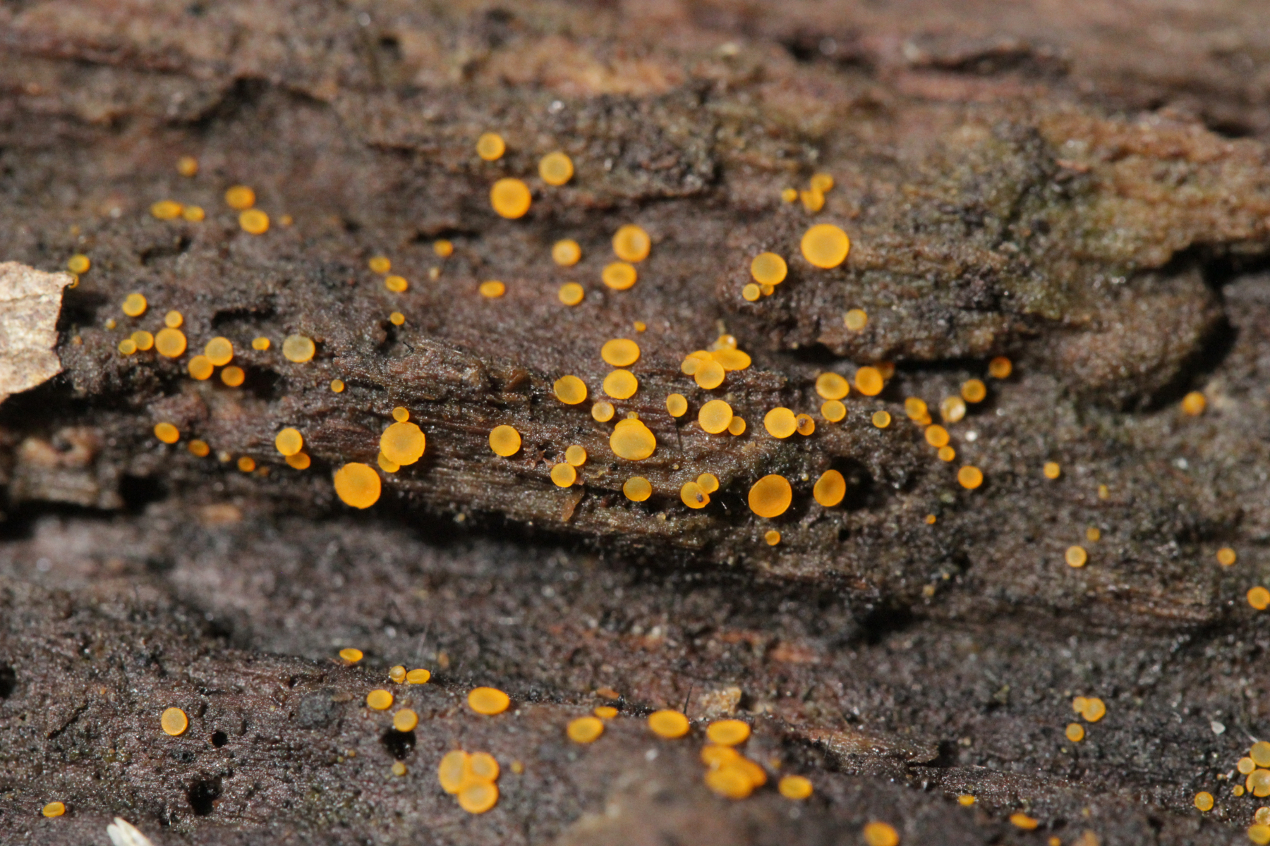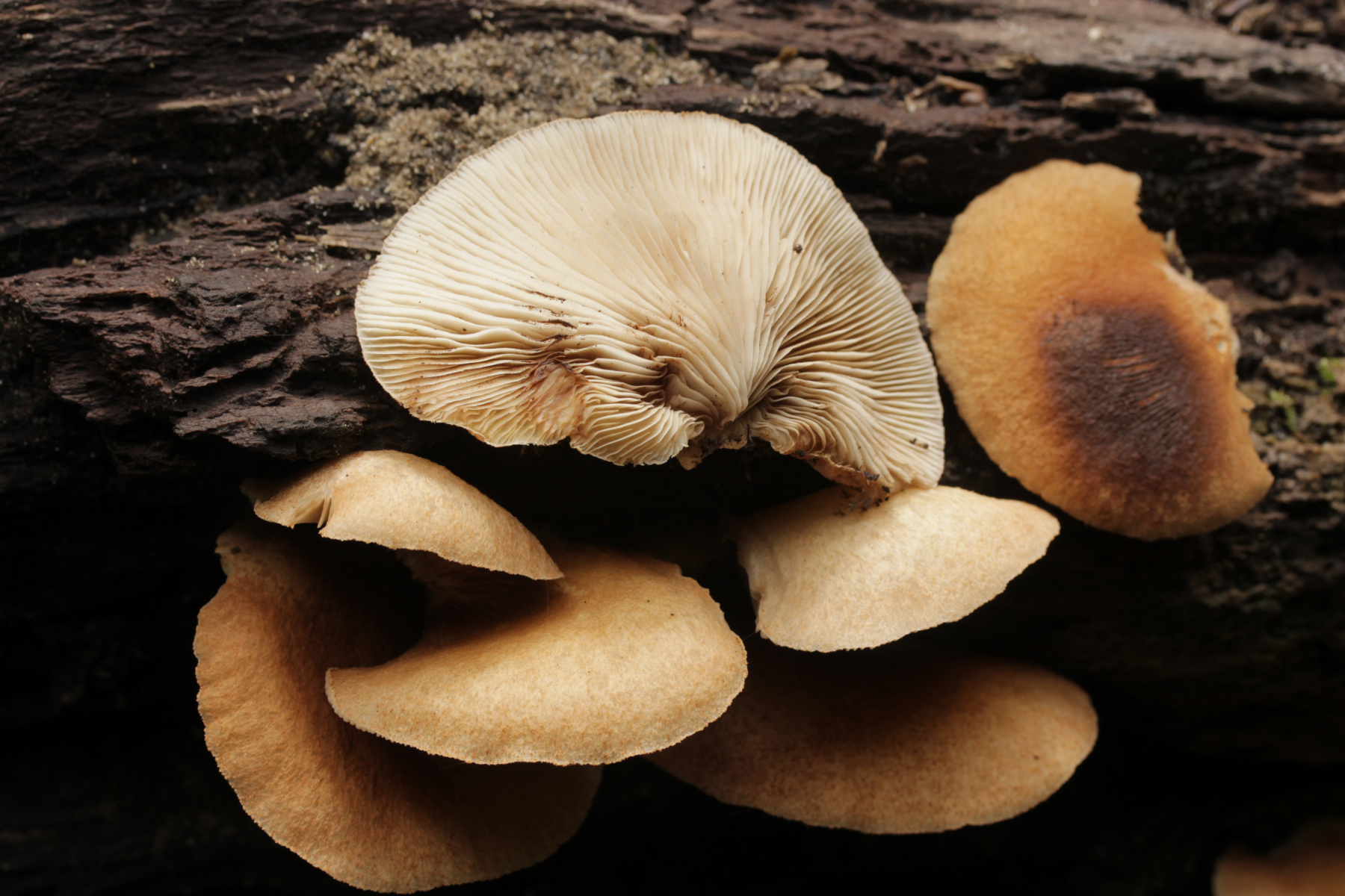 10. Crepidotus crocophyllus. Davon wollte ich am nächsten Tag dann auch ein Exemplar zur APR-Exkursion mitnehmen. Leider hat mich die Kombination aus Köfferchen und Korb in der S-Bahn überfordert und ich habe den Koffer liegenlassen. Jetzt fährt er also munter mit der S1 hin und her...