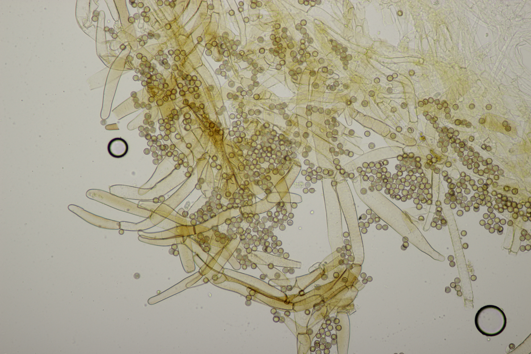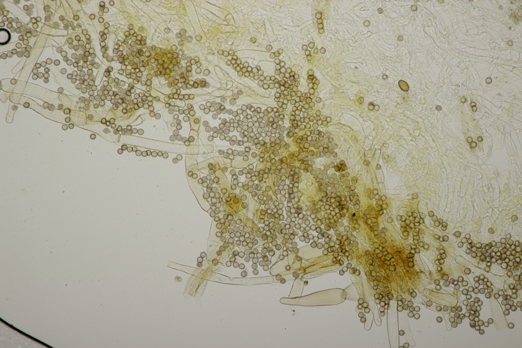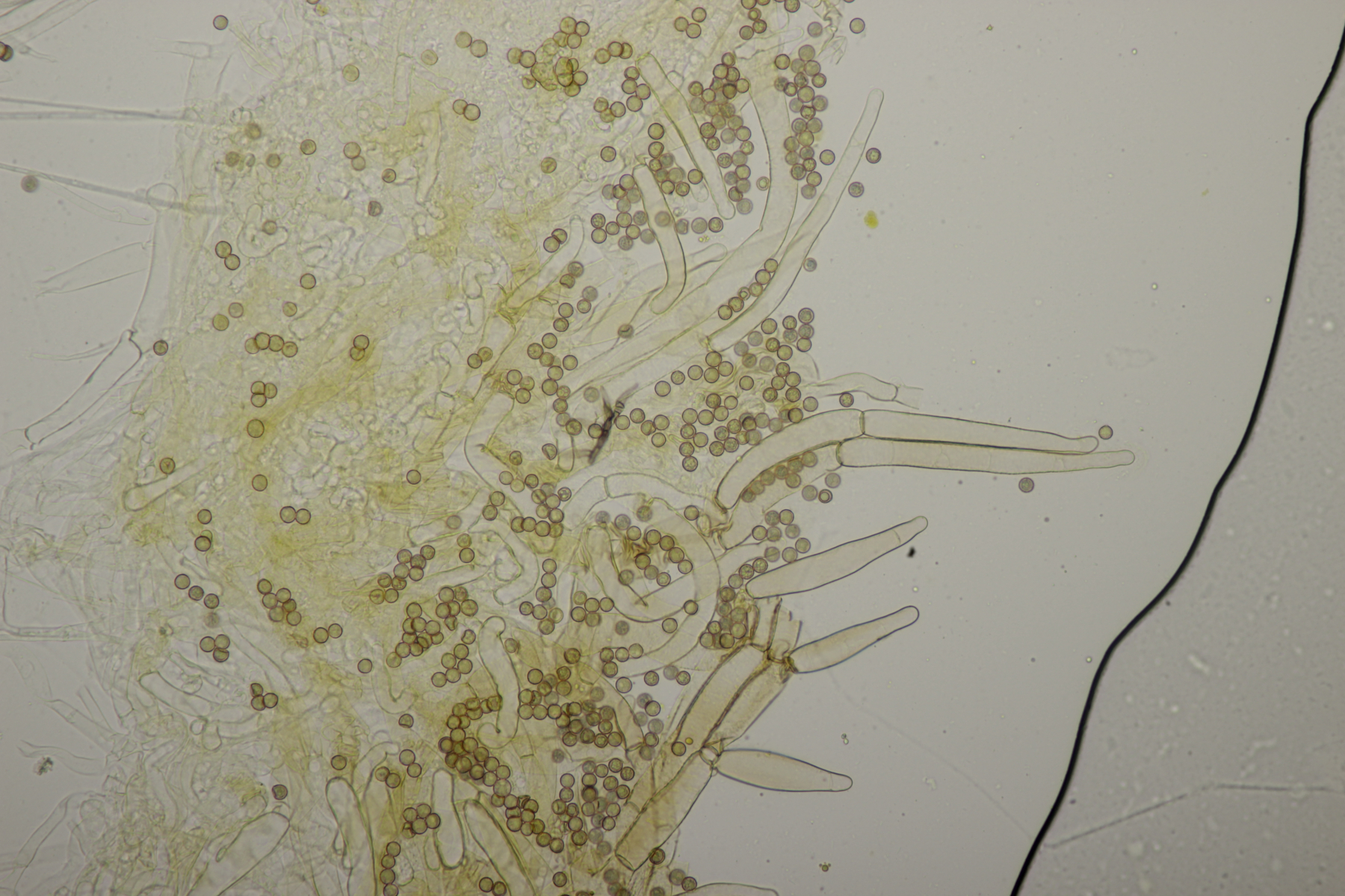Bei der Huthaut scheint auch etwas Lamelle mit ins Präparat geraten zu sein. War leider schon recht matschig nach dem Aussporen.