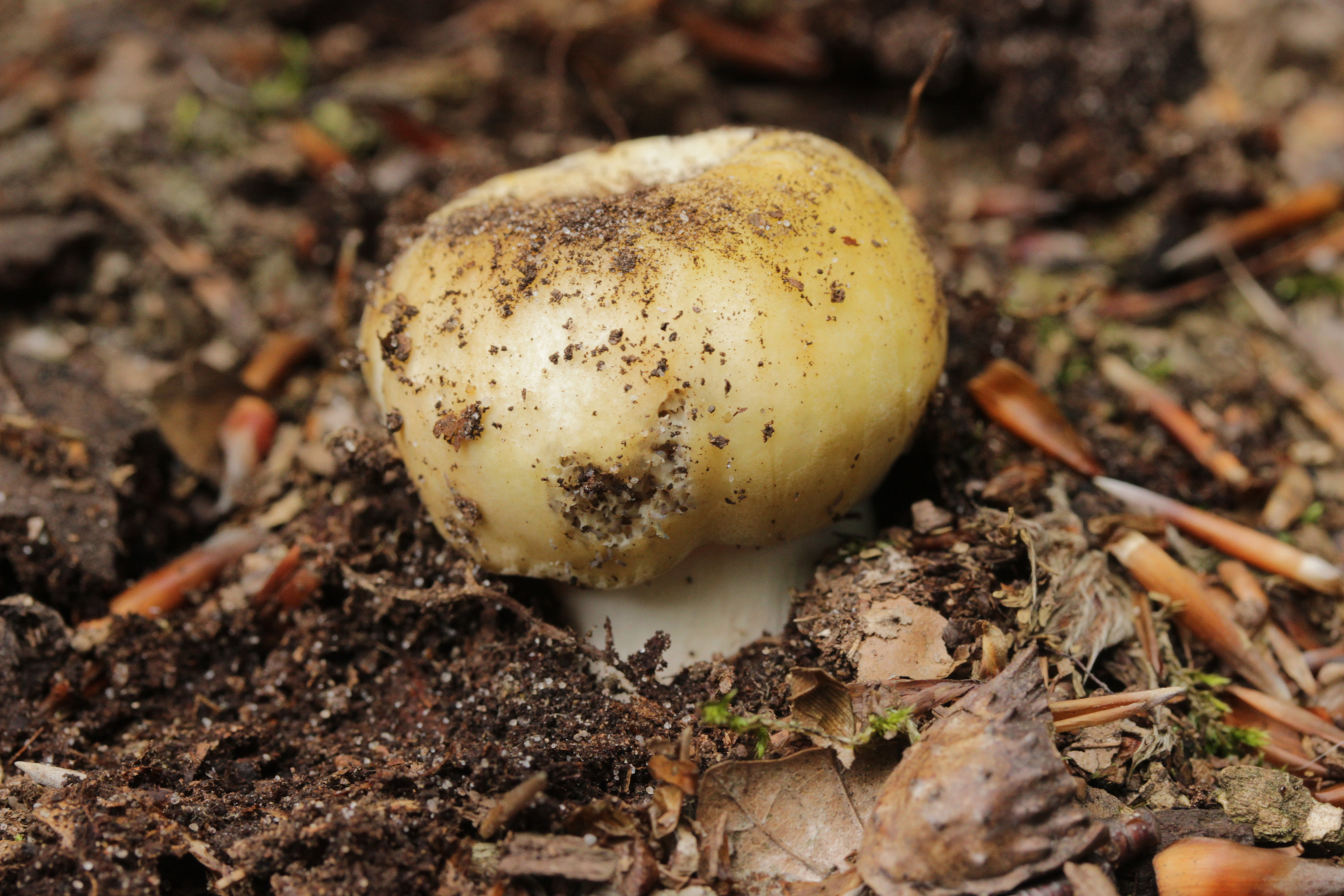 6. Extrem kleiner Täubling unter Fagus, Geschmack ebenfalls metallisch, chemische Reaktionen wie bei 5. Sporenabwurf ist leider gescheitert und danach war der Fruchtkörper auch noch von Schimmel überzogen. Aber die Tendenz geht hier auch zu Russula risigallina