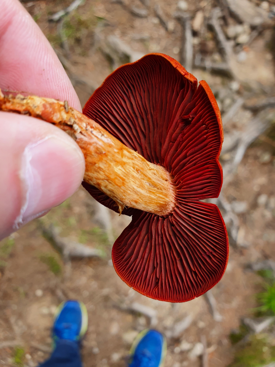 Bin im Urlaub im bayrischen Wald über diese wie ich meine Dermocybe gestolpert. Stand am Wegrand im Gras bei diversen Nadelbäumen: Fichten, Lärchen, Douglasie. Könnte aus meiner Sicht ggf. purpureus sein. Kann man das makroskopisch so bestätigen?
