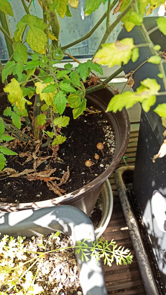 kann mir Jemand sagen was für ein Pilzart sind die hier, die sind neben meine Tomaten Pflanzen gewachsen.