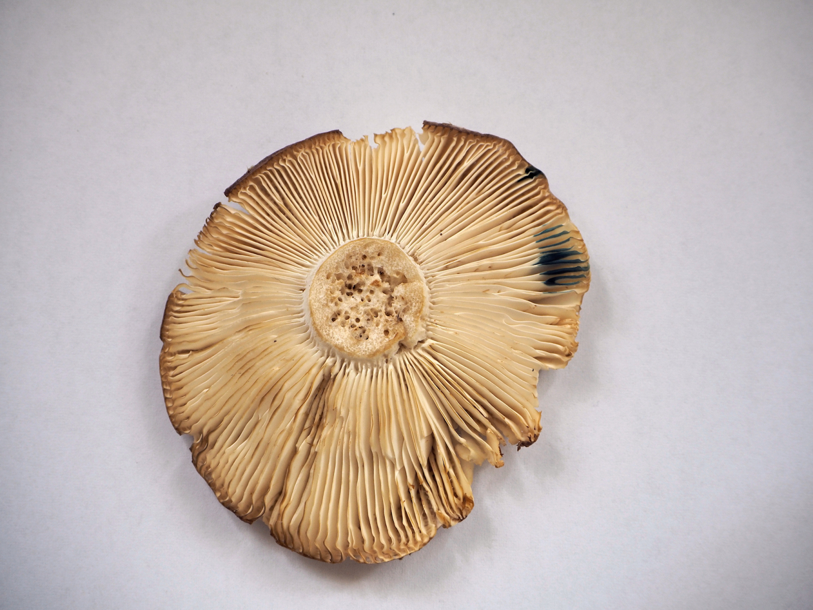 7) Lamellen creme, engstehend, gegabelt, paar Zwischenlamellen