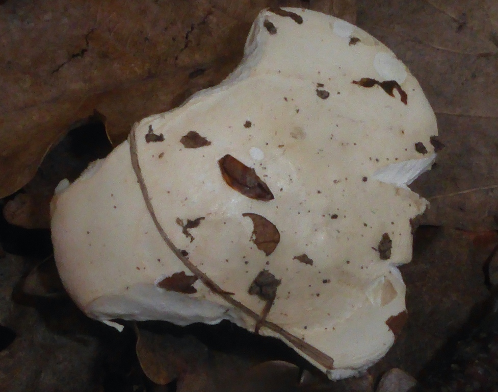 6) Die Huthaut lies sich bis gut 2/3+ abziehen, darunter weisslich/fliederfarben durchgefärbt
