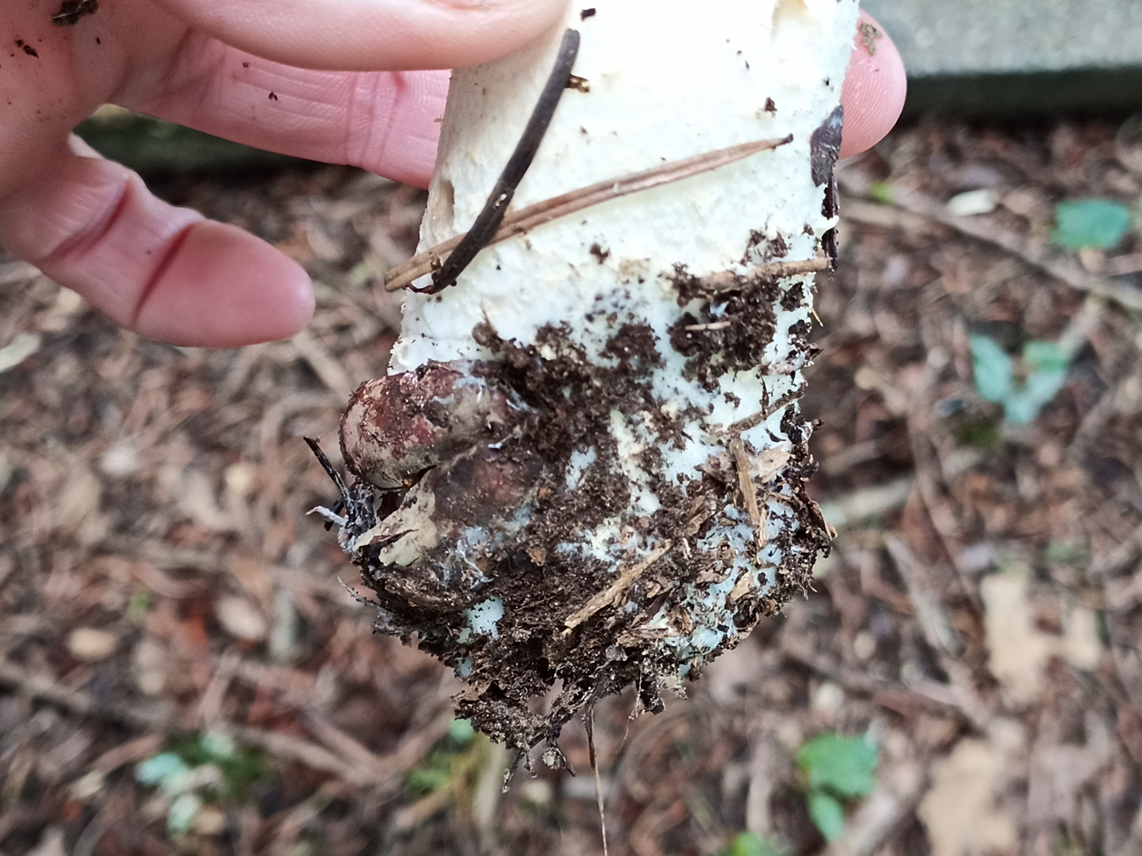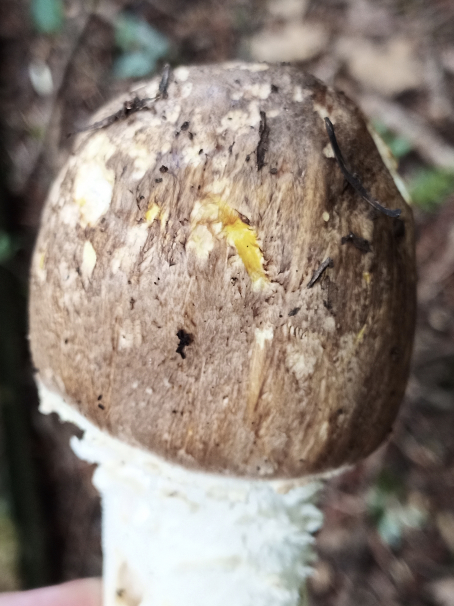 Den habe ich heute auf dem Friedhof gefunden neben Fichten. Im Nachinein habe ich vergessen zu schauen, ob der Pilz Lamellen oder einen Schwamm hat. Aber eventuell reichen euch die Fotos zur Bestimmung.