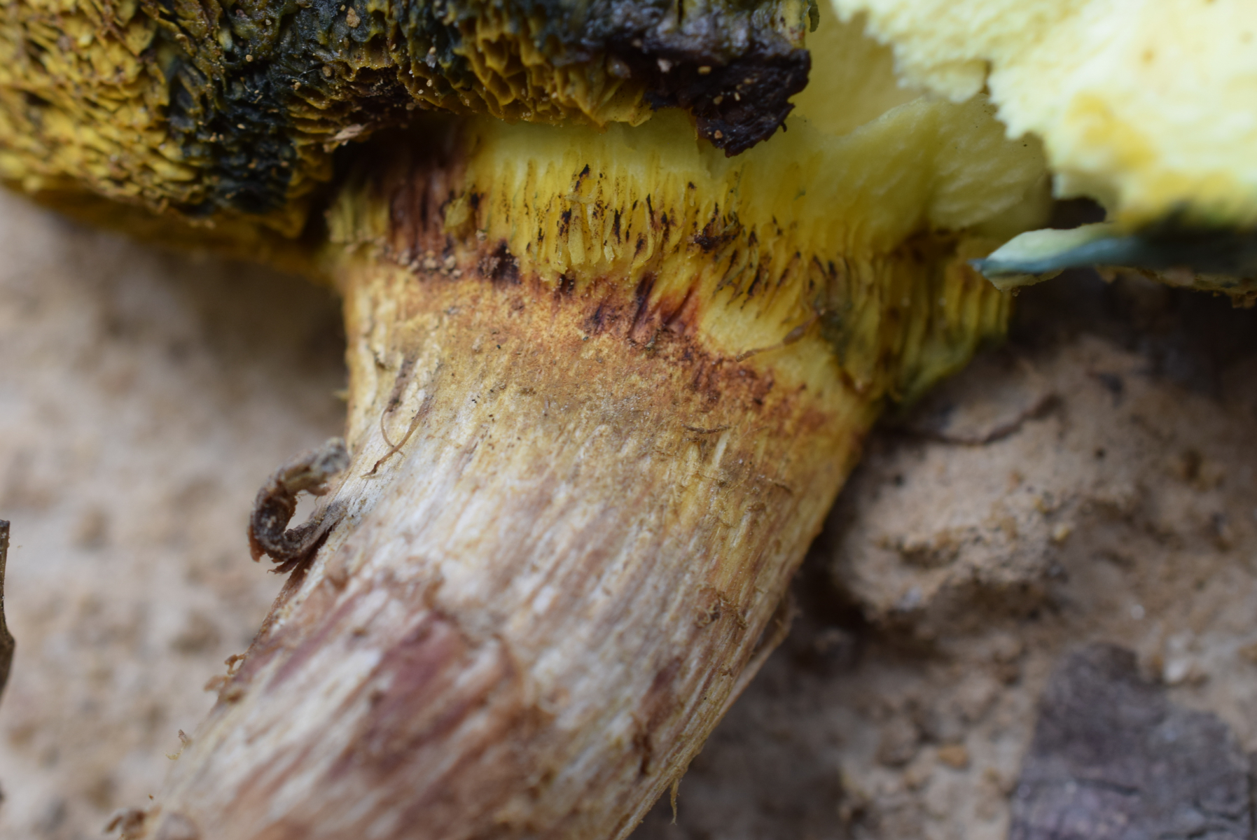 Beide Röhrlingen haben Merkmalle von beide Kandidaten . Bin etwas mehr an X. subtomentosus als an silwoodensis . Trockenschaden irritiert , besonderes Fleisch bei schnitt . X. silwoodensis kann auch so intensive Farbe bei Schnitt in ältere Stadium haben , in junge nicht so Intensiv . Für silwoodensis etwas Hutoberfläche ungewöhnlich aber es gehet um starke Trockenschaden .